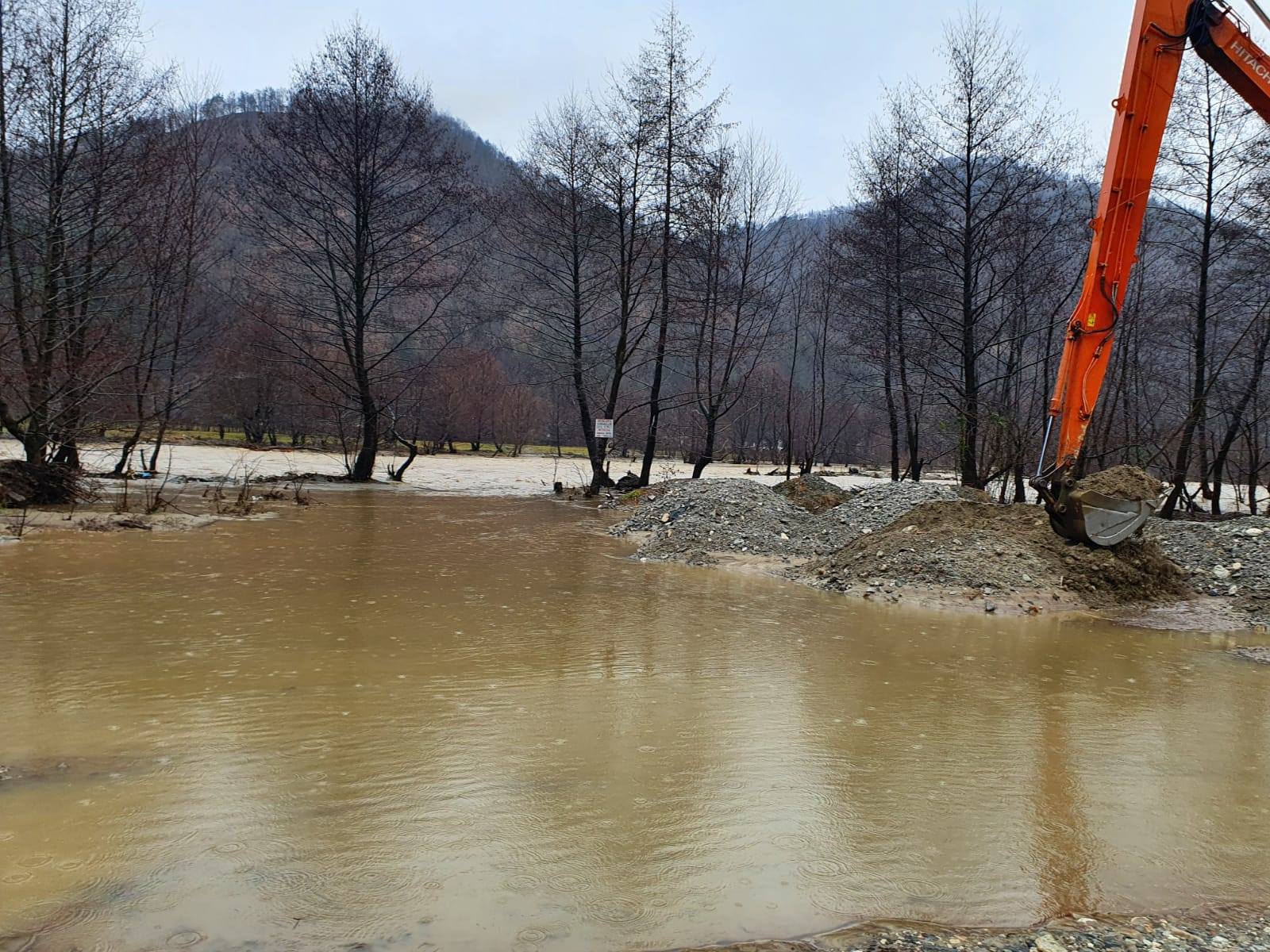 De asemenea, s-a acționat cu saci de nisip din stocul de apărare și cu mijloace de intervenție pentru supraînălțarea malului din dreptul pârâului Călugăru.