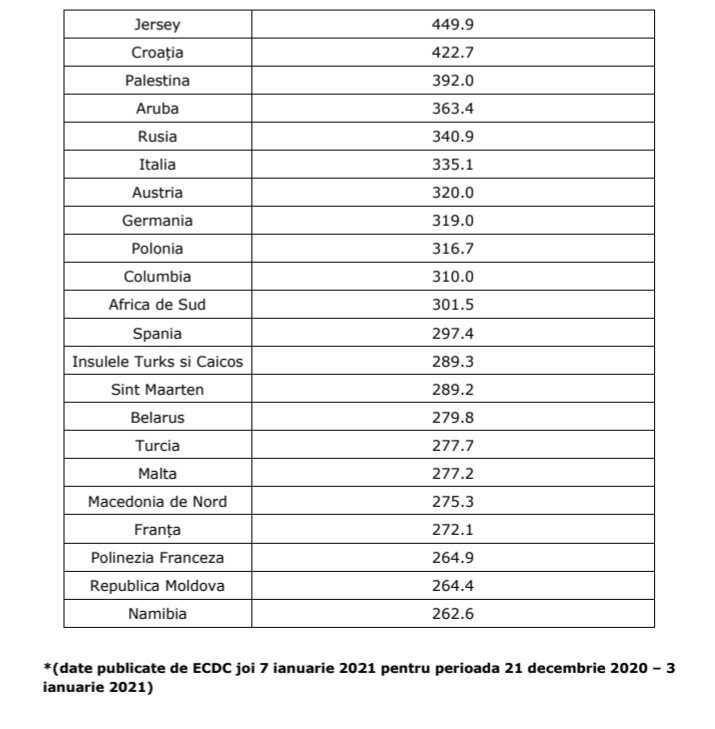 Având în vedere analiza situației epidemiologice la nivel național la data de 07.01.2021 realizată la nivelul Ministerului Sănătăți împreună cu Centrul Național de Coordonare și Conducere a Intervenției și propunerile Institutului Național de Sănătate Publică referitoare la țările/zonele/teritoriile de risc epidemiologic pentru care se instituie măsura carantinei asupra persoanelor care sosesc în România din acestea,