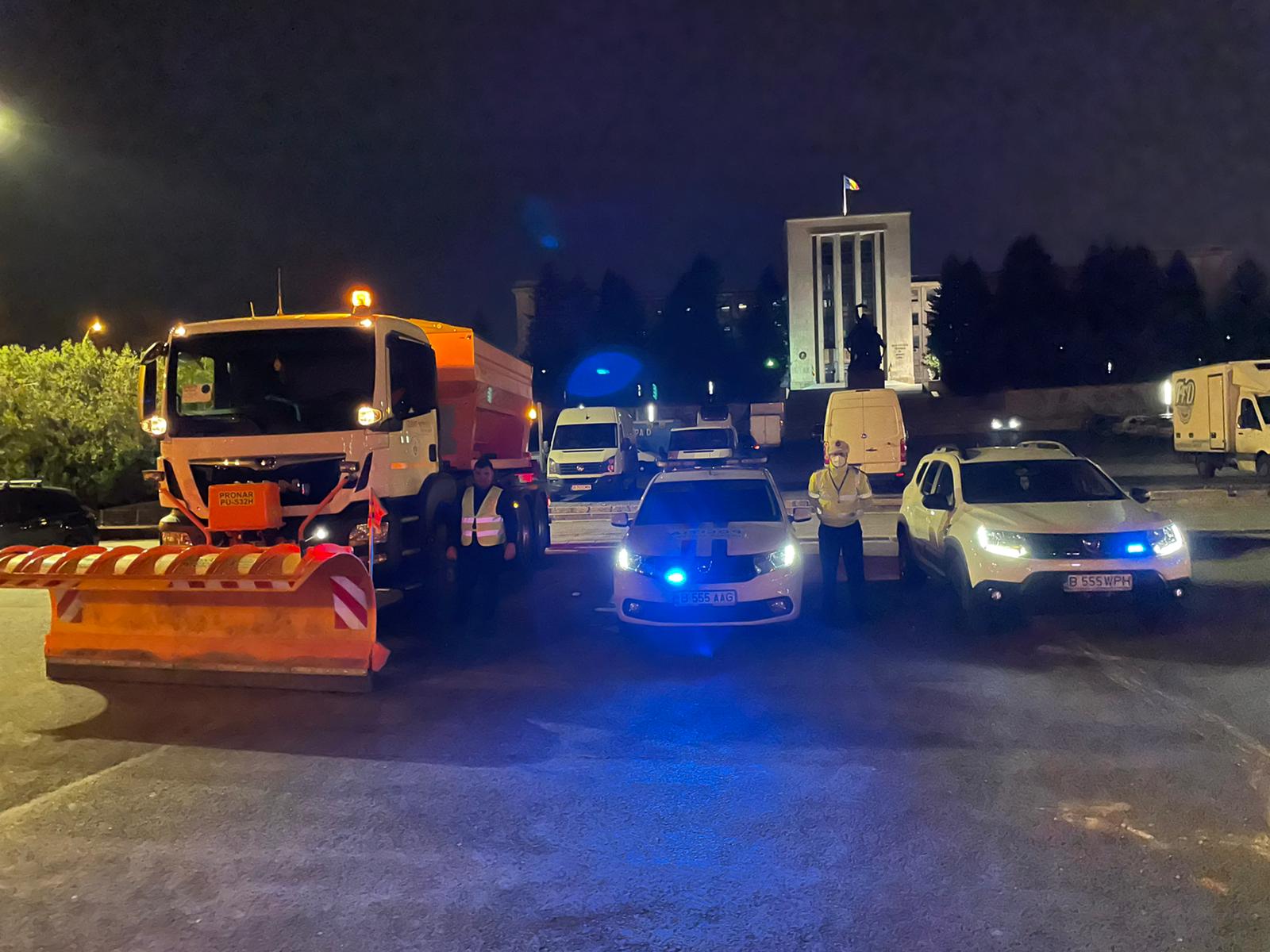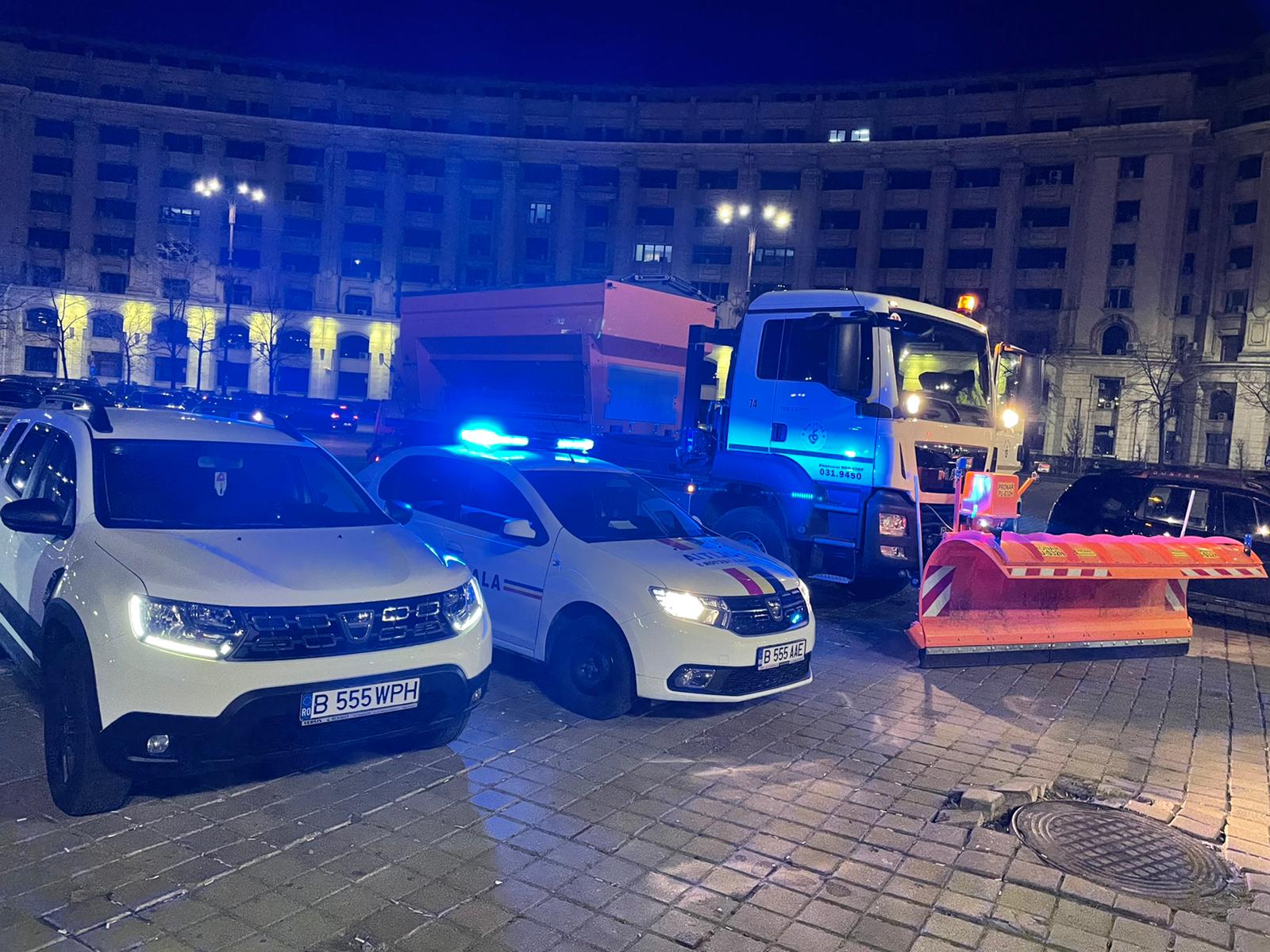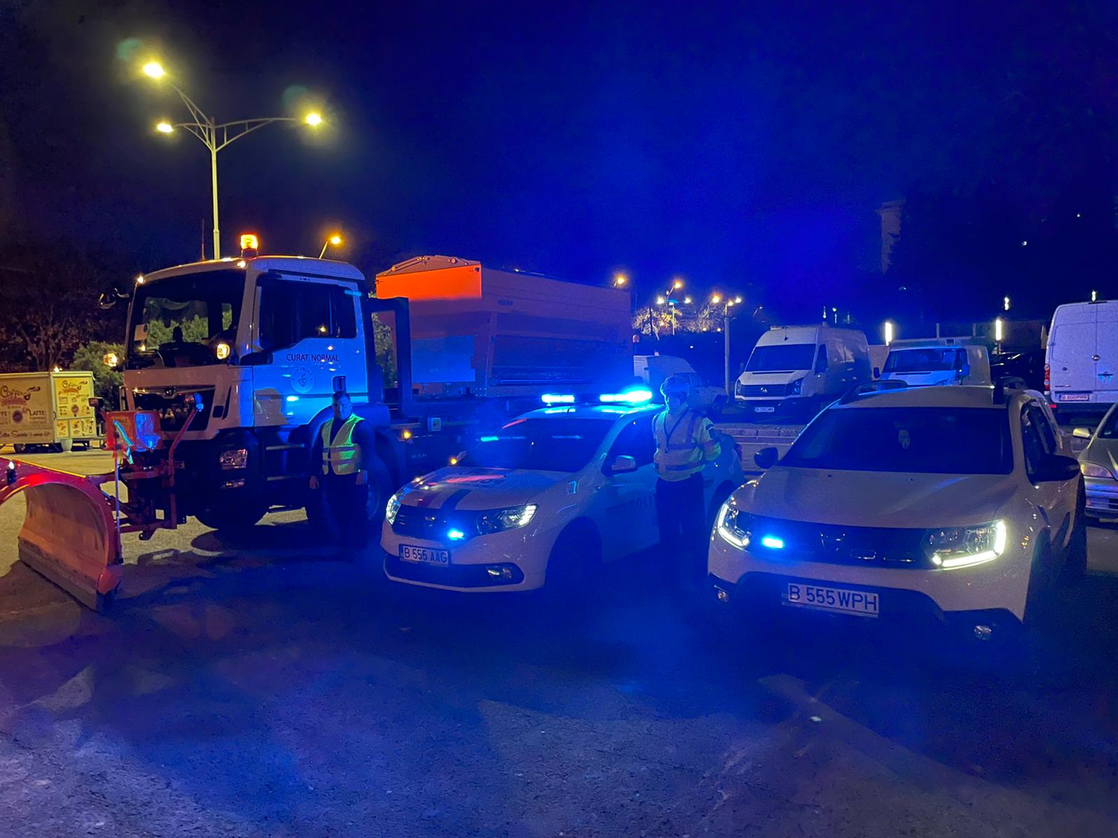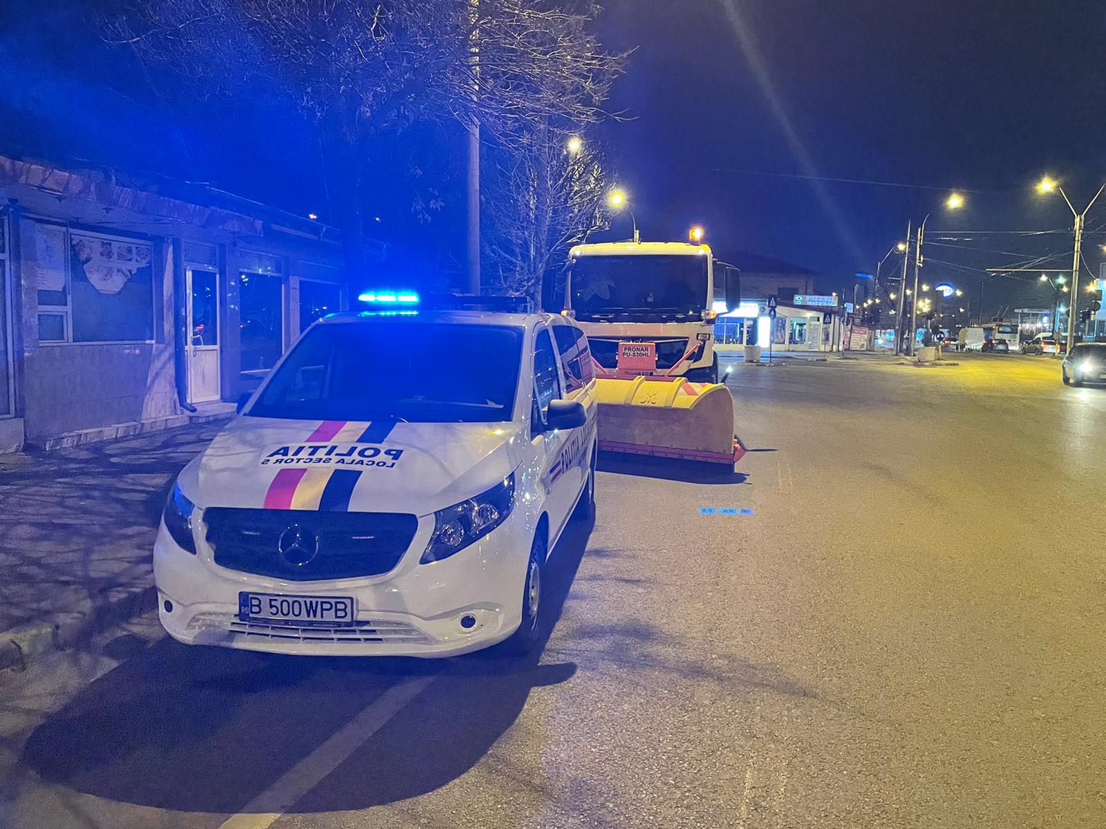 Alături de echipajele de deszăpezire se află și echipaje ale Poliției Locale Sector 5, pentru a elibera, la nevoie, calea utilajelor .