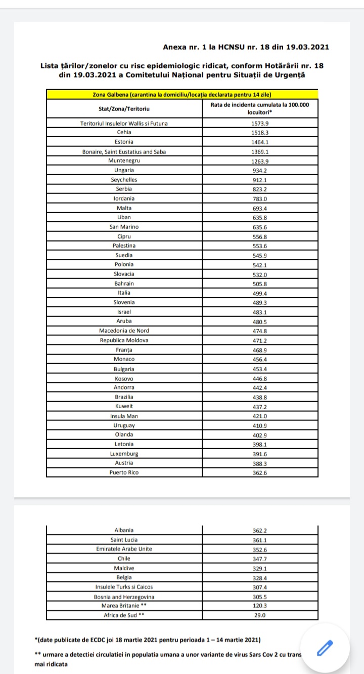 Art.1 – Se aprobă lista țărilor/zonelor/teritoriilor de risc epidemiologic ridicat