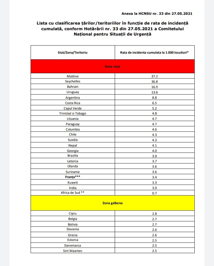 Pe lista galbenă se mai află țări precum: Grecia, Turcia, Belgia, Croația sau Elveția.