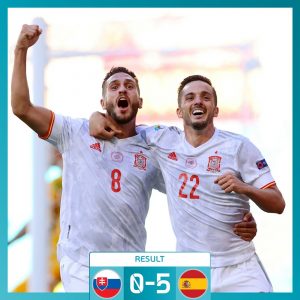 Pe teren propriu Spania a distrus Slovacia, scor final 5 la 0 (autogol Dubravka min 30, Laporte min 45, Sarabia min 56, Ferran Torres min 67 și autogol Kucka min 71).