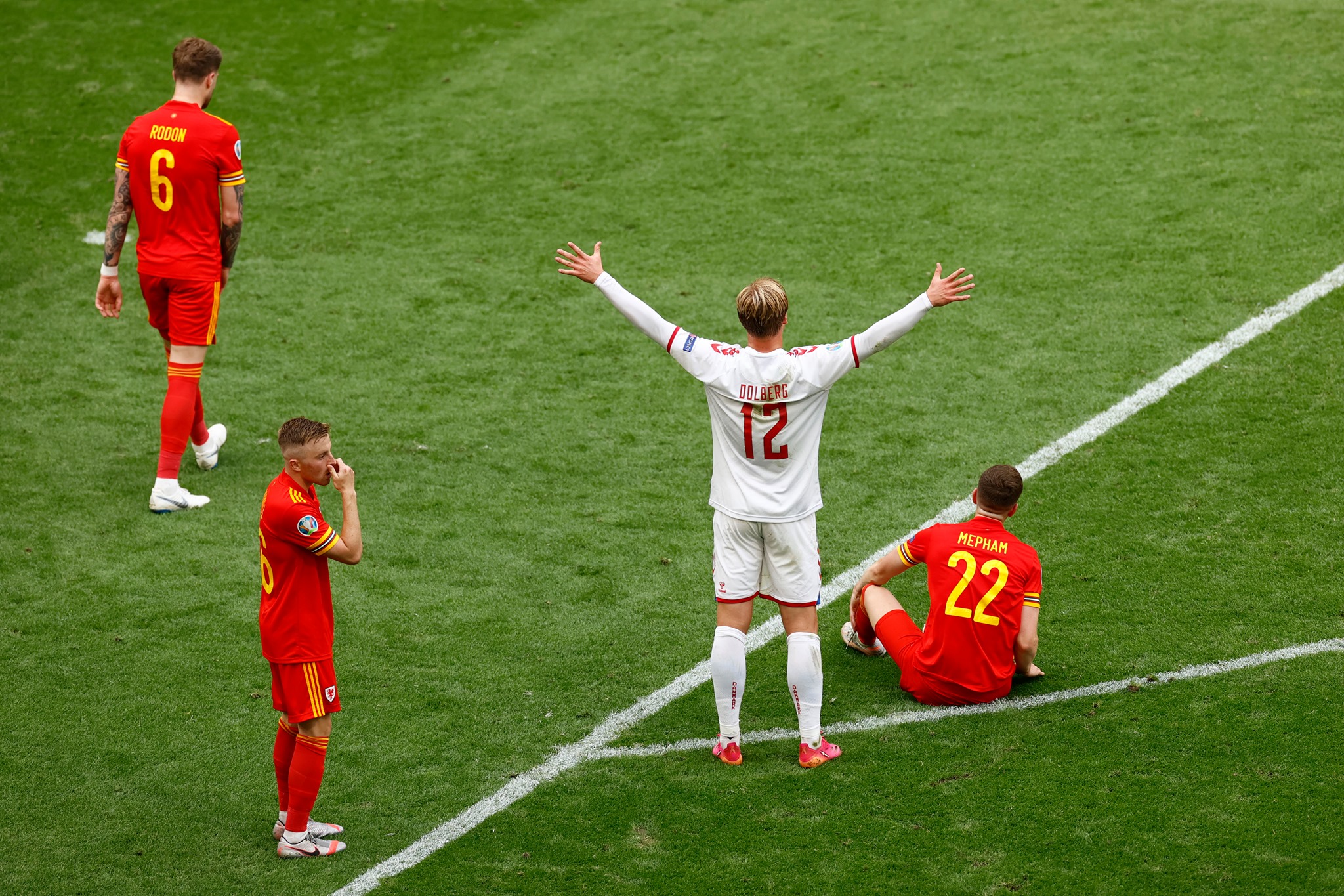 Cu 9 la 1 raportul cornerelor și 8 la 1 cel al suturilor pe poartă, nici nu este de mirare că Danemarca a mai punctat și pe finalul meciului, Maehle (min 88) și Braithwaite (min 94) completând spectacolul care aduce Danemarcei prima victorie dintr-un meci eliminatoriu de după victoria obținută în fața Germaniei în finală de la EURO 1992!