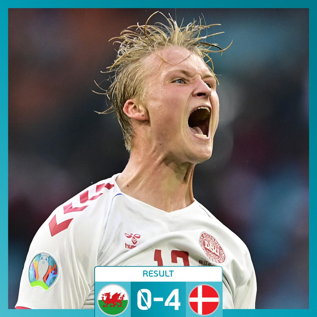 EURO2020: Danemarca depășește lejer Țara Galilor și se califică în sferturi!