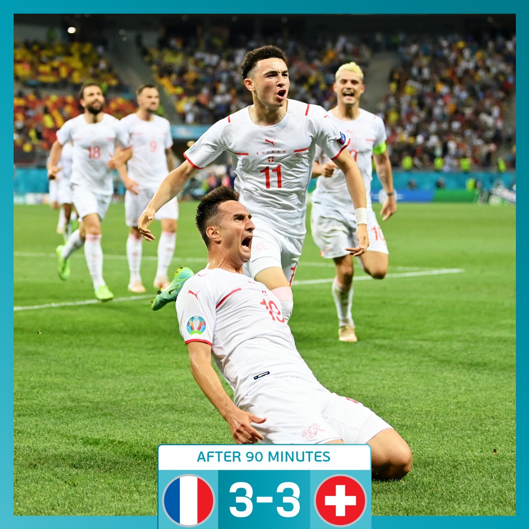 Franța și Elveția au remizat, scor 3 la 3, la finalul celor 90 de minute regulamentare, exact cum făcuseră și Spania și Croația în optimea de finală precedentă.