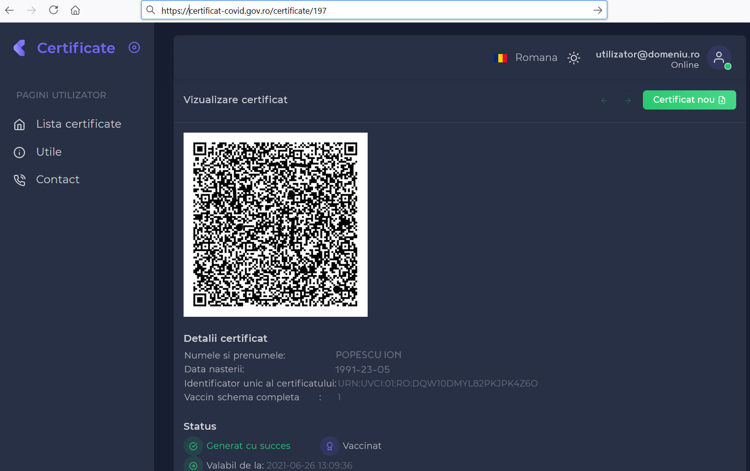 * Certificatul este gratuit.