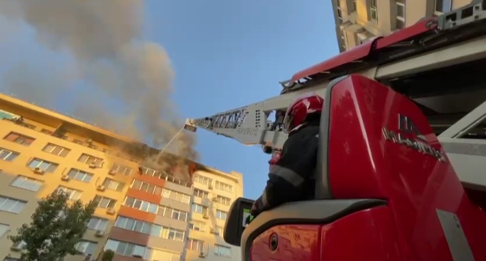 Un incendiu s-a produs la etajul 9 al unui bloc de locuinte in str. Poiana Narciselor.