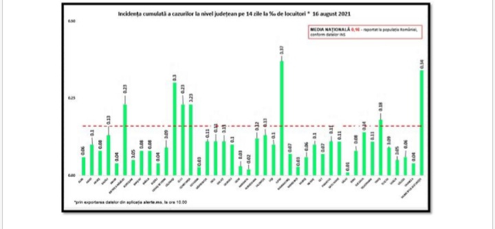 Până astăzi, 16 august, pe teritoriul României, au fost confirmate