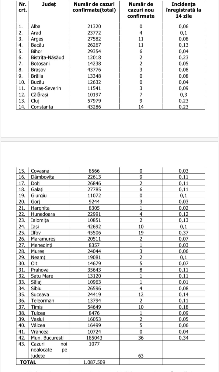 *Referitor la „cazurile noi nealocate pe județe”, facem precizarea că numărul