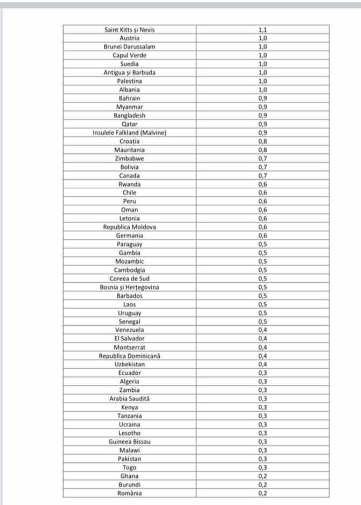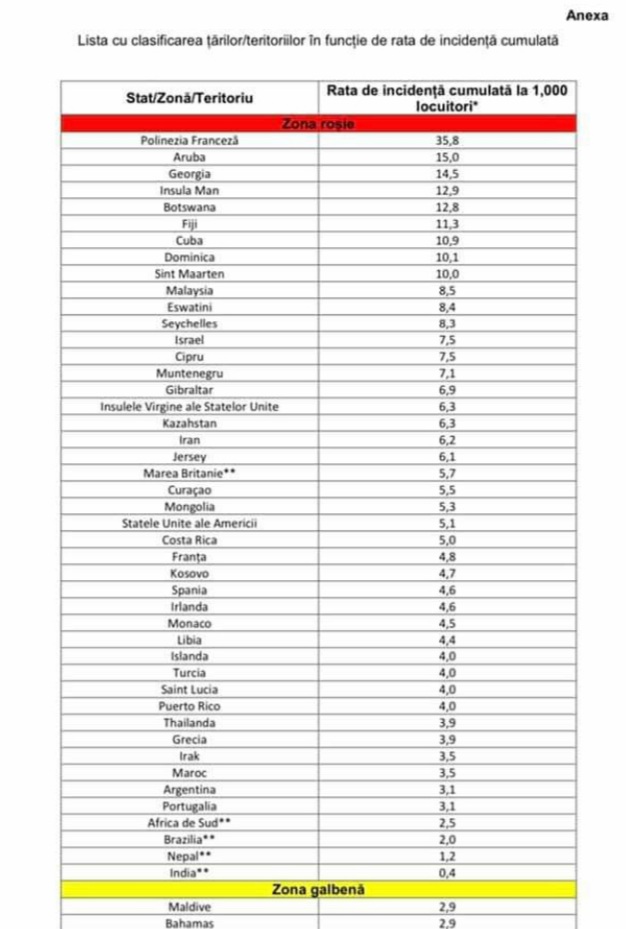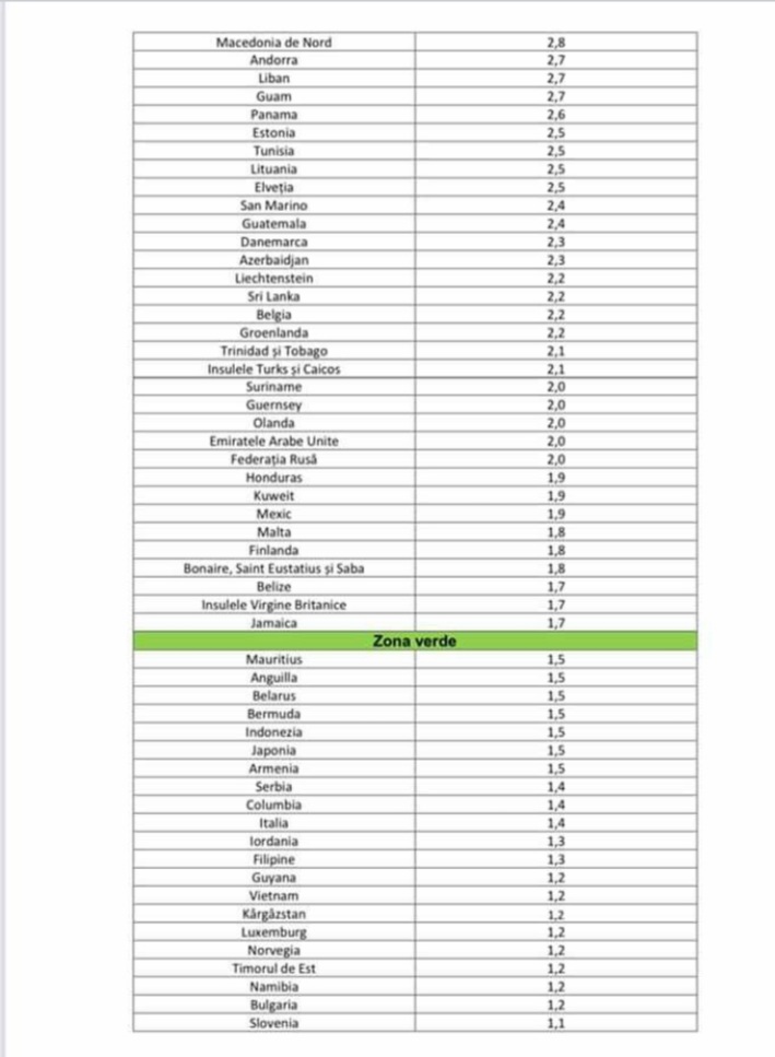 -în zona verde au intrat: Indonezia, Columbia, Bermuda, Namibia și Kârgâzstan.