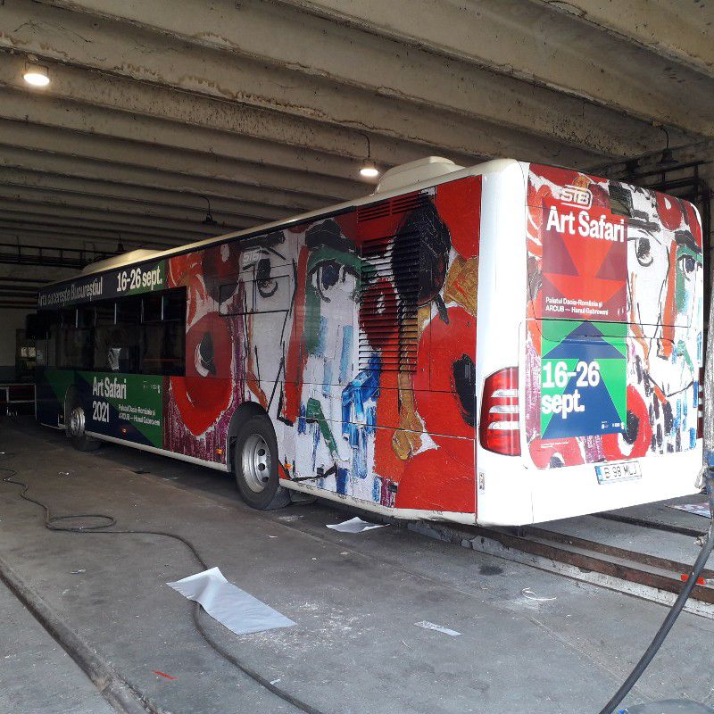 10 linii de autobuze care străbat capitala de la nord la sud și de la est la vest sunt colantate cu reproduceri ale câtorva dintre cele mai importante opere din cadrul expoziției Art Safari 2021 ( 16- 26 sept 2021).
