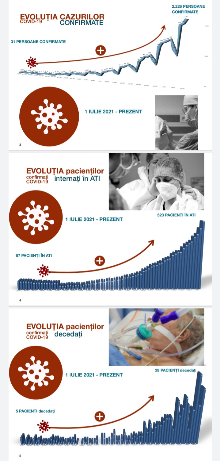 Creşterea este una importantă şi care a dus la creşterea numărului cazurilor din terapie intensivă de la 67 de pacienţi în ATI la începutul lunii iulie la 523 de pacienţi în ATI în ziua de astăzi şi vreau să subliniez că în ultimele 24 de ore au intrat în ATI peste 50 de pacienţi.