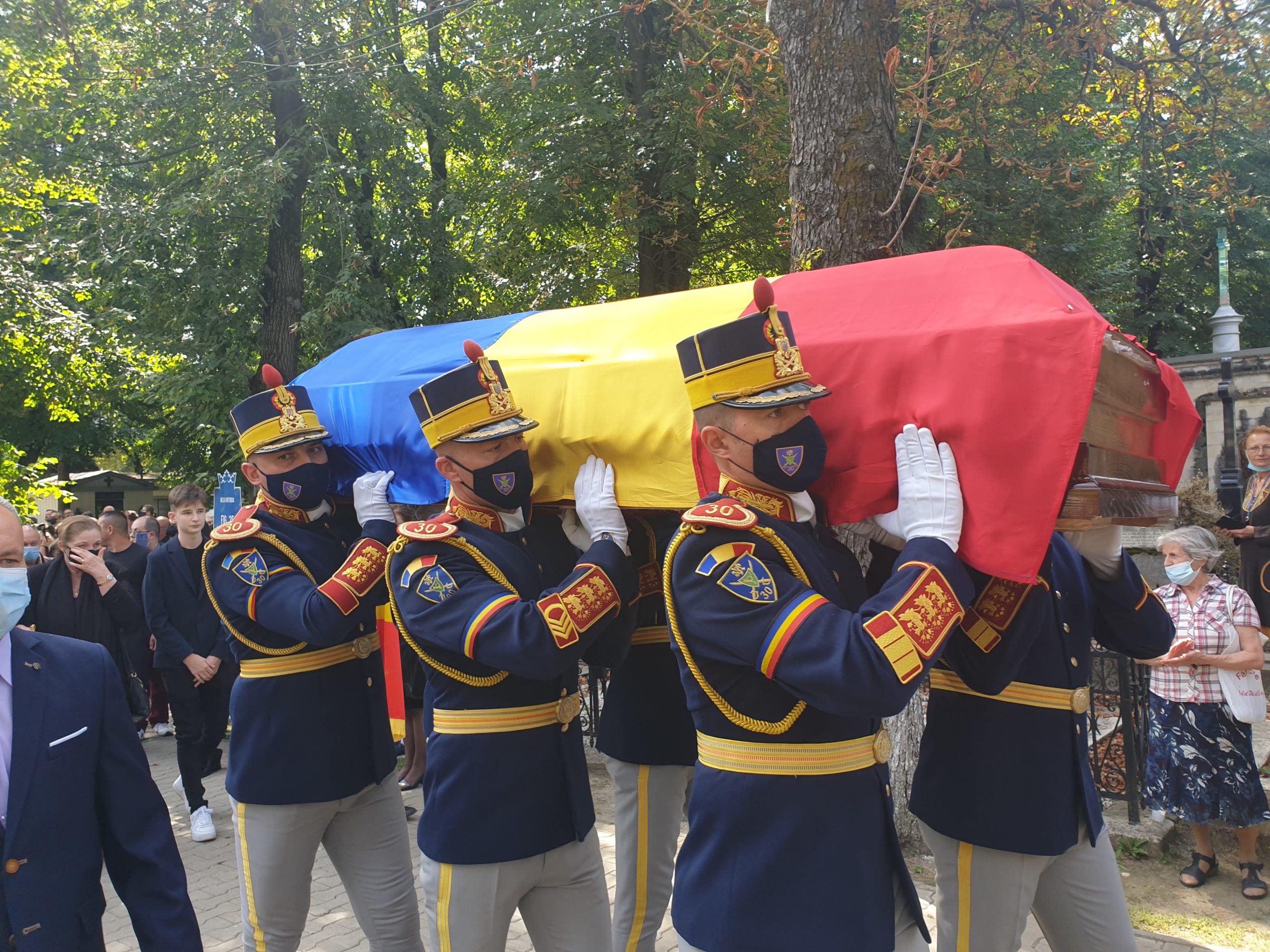 La sosirea la Cimitirul Bellu, sicriul, acoperit cu drapelul României, a fost întâmpinat cu aplauze.