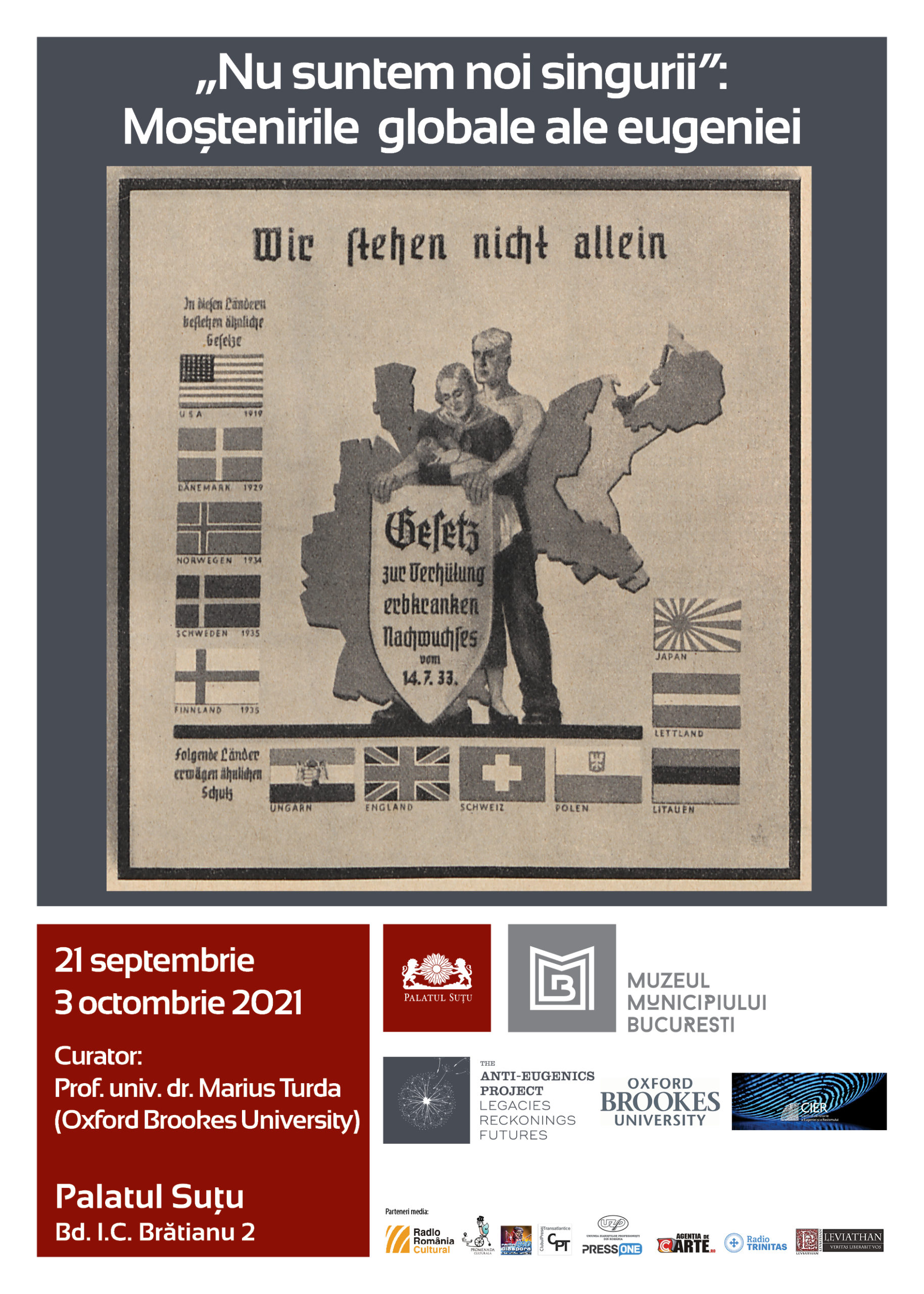 De exemplu, sterilizarea forțată a multor femei rămâne o problemă de actualitate în multe țări precum Cehia, Peru și Statele Unite. Pandemia provocată de coronavirus ne îndeamnă la o analiză deschisă a modului în care atitudini sociale înrădăcinate în gândirea eugenică continuă să ne afecteze deciziile de zi cu zi. Educația continuă, precum și condamnarea publică a eugeniei, sunt componente esențiale ale efortului nostru de a înțelege aspectele puțin discutate în spațiul public ale unui trecut dureros și nedrept” – a declarat prof. univ. dr. Marius Turda (Oxford Brookes University), curator al expoziției „Nu suntem noi singurii: Moștenirile globale ale eugeniei”.