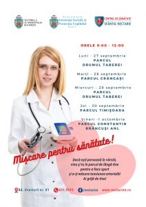 Cu ocazia Zilei Mondiale a Inimii, sărbătorită anual pe 29 septembrie, cadre medicale ale Centrului de Sănătate Multifuncțional „Sfântul Nectarie” vor fi prezente la locul de mișcare și distracție cu tensiometru și stetoscop, pentru a verifica, gratuit, starea de sănătate a sistemului cardiovascular al tuturor participanților. Se vor acorda mici consultații, sfaturi și îndrumări pentru o viață lungă și sănătoasă.