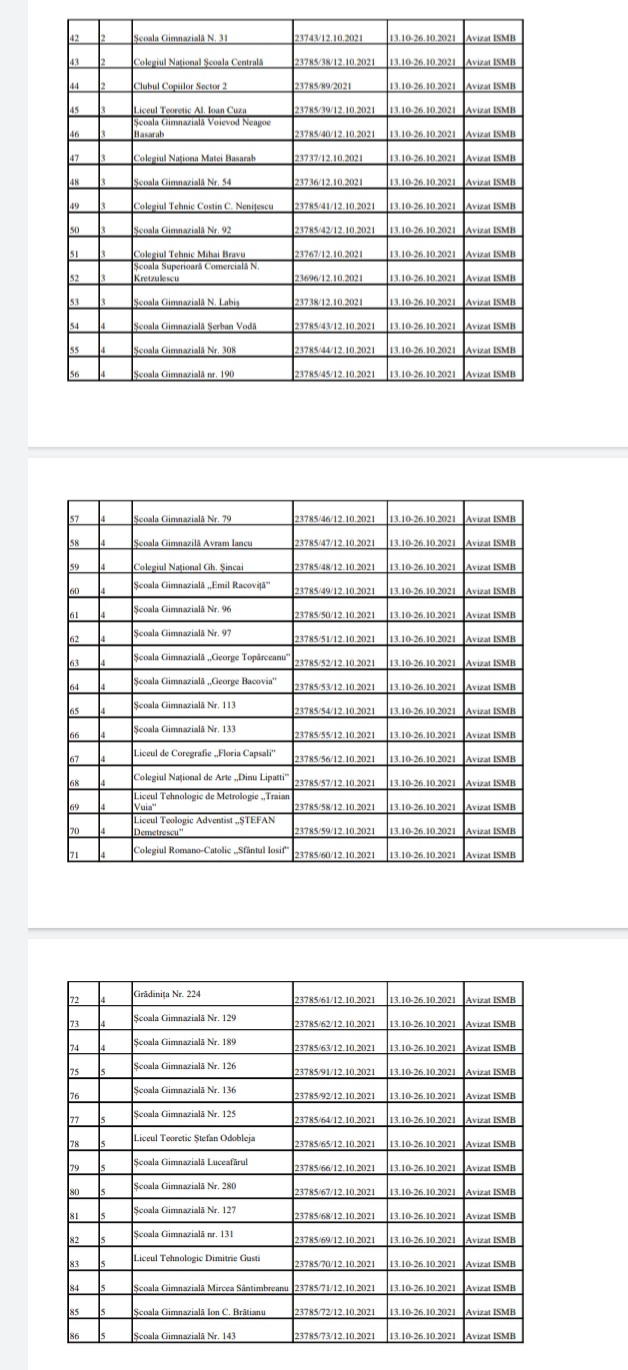 Scoli din Bucuresti care au cerut închiderea conform Art. 3.2 (cu aprobare ISJ/ISMB)