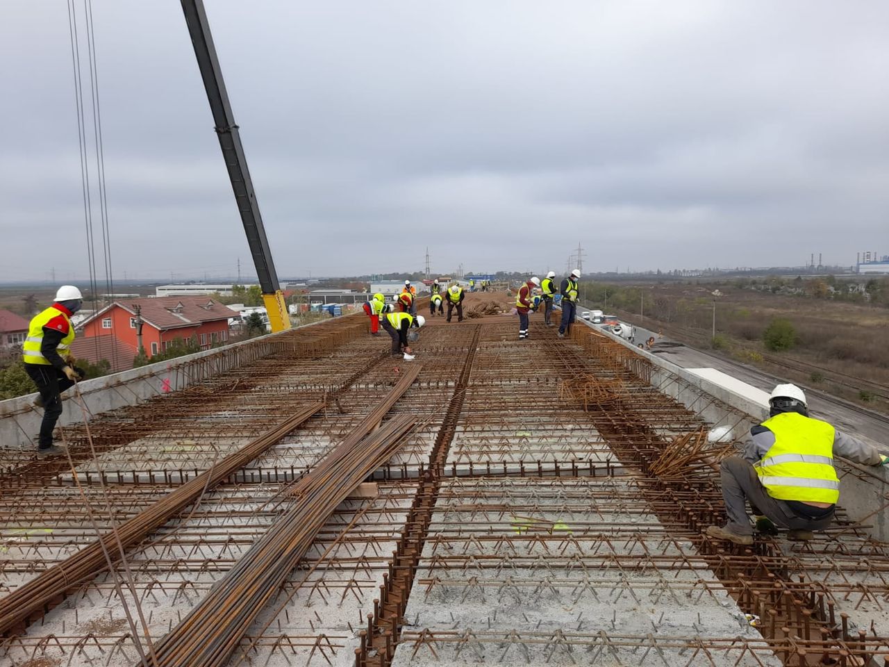 - ”După ce s-au finalizat armarea și montarea elementelor de margine la rampa de coborâre spre Bragadiru, a început turnarea betonului la placa de supra-betonare.