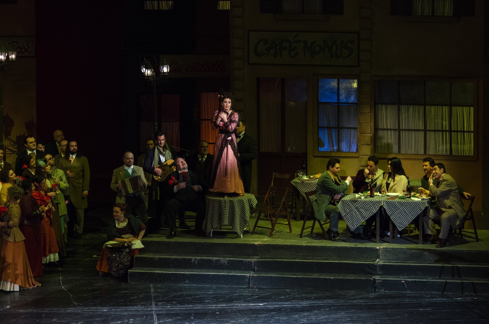 Astfel, scenografii Ștefan Caragiu și Liliana Cenean au recreat cu fidelitate atmosfera Cartierului Latin din această perioadă, cu celebra cafeanea „Momus” și vânzătorii ambulanți de pe străzile orașului, imaginea unei mansarde întunecate, adăpost pentru artiștii vremii, zorii unei zile aproape de bariera Parisului.