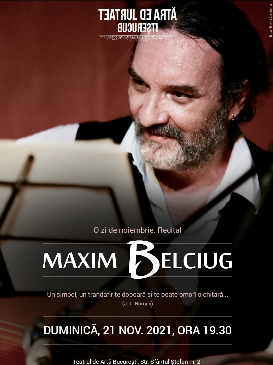 Îndrăgitul chitarist Maxim Belciug revine pe scena din str. Sfântul Ștefan 21 pentru a oferi unul dintre acele recitaluri solo în care chitara încetează să mai fie un simplu instrument și devine orchestră, izvor de culori, de freamăt, de nuanțe și emoții.