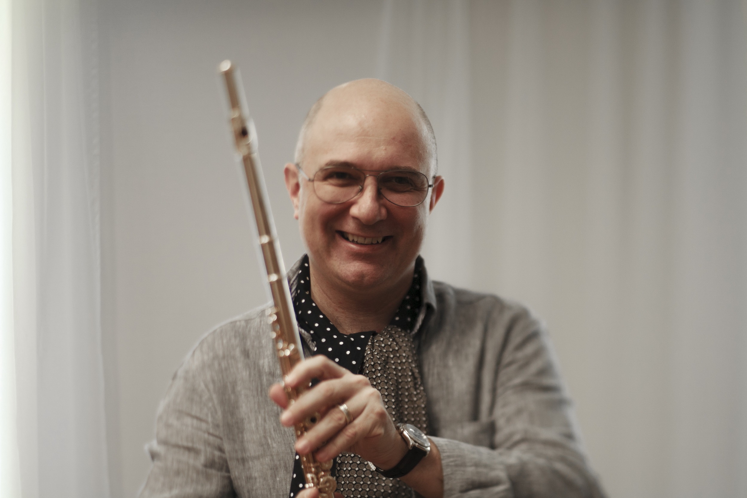 Solist al Filarmonicii George Enescu, acesta interpretează pe un instrument „bijuterie”: un flaut de aur de 18k, realizat de compania japoneză Muramatsu. Seara va continua cu o altă lucrare ce poartă semnătura lui Bach: Concertul nr. 1 în pentru pian şi orchestră, lucrare în care îl veți aplauda pe pianistul Horia Mihail, solist al Orchestrelor și Corurilor Radio România.