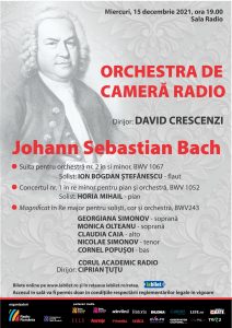 Miercuri, 15 decembrie (de la ora 19:00), Orchestra de Cameră Radio dăruiește publicului un concert 100% Bach, derulat la Sala Radio. „Eu cânt notele așa cum sunt scrise, dar Dumnezeu este cel care creează muzica” – mărturisea Bach despre felul în care privea arta sunetului.
