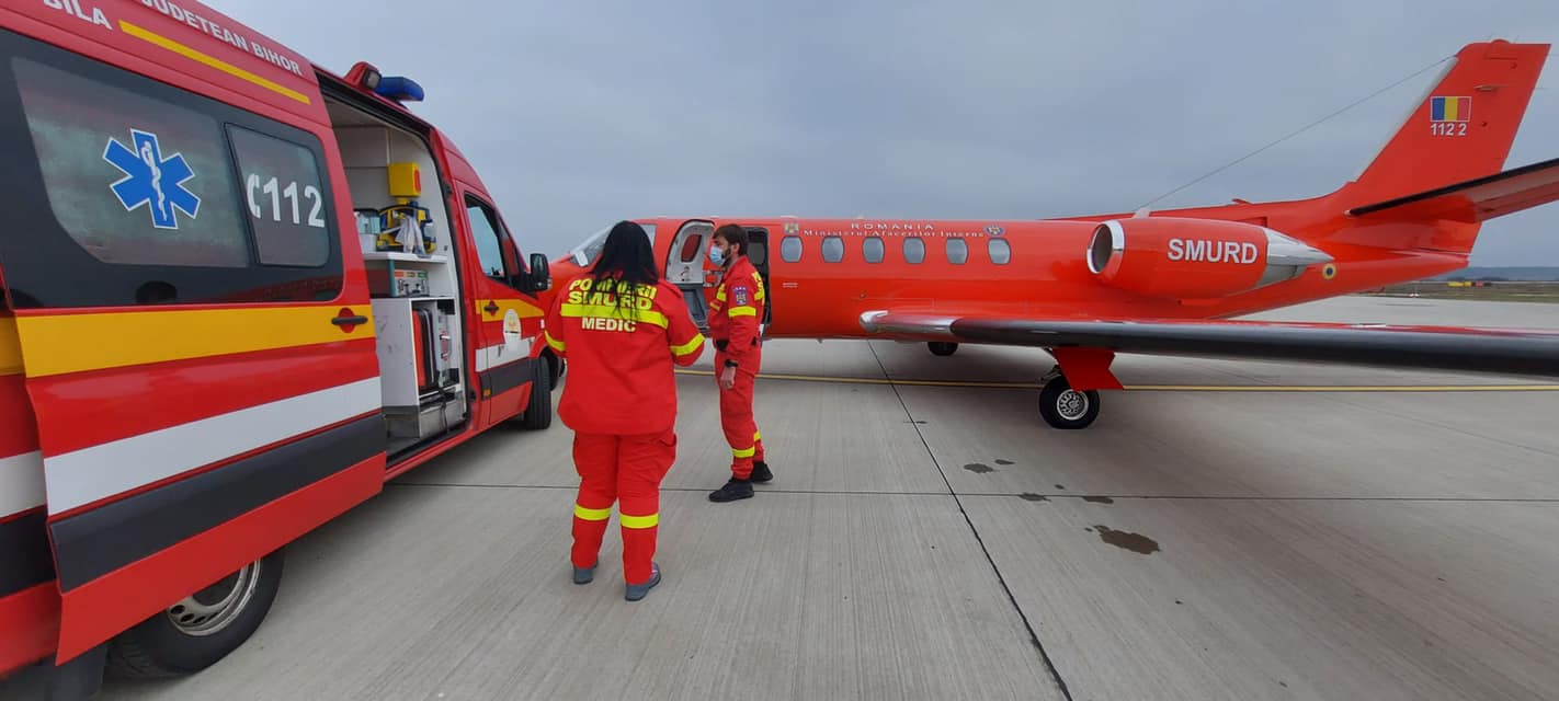 DSU: 3 bebeluși în stare critică, transportați de echipajul aeronavei SMURD Cessna Citation V