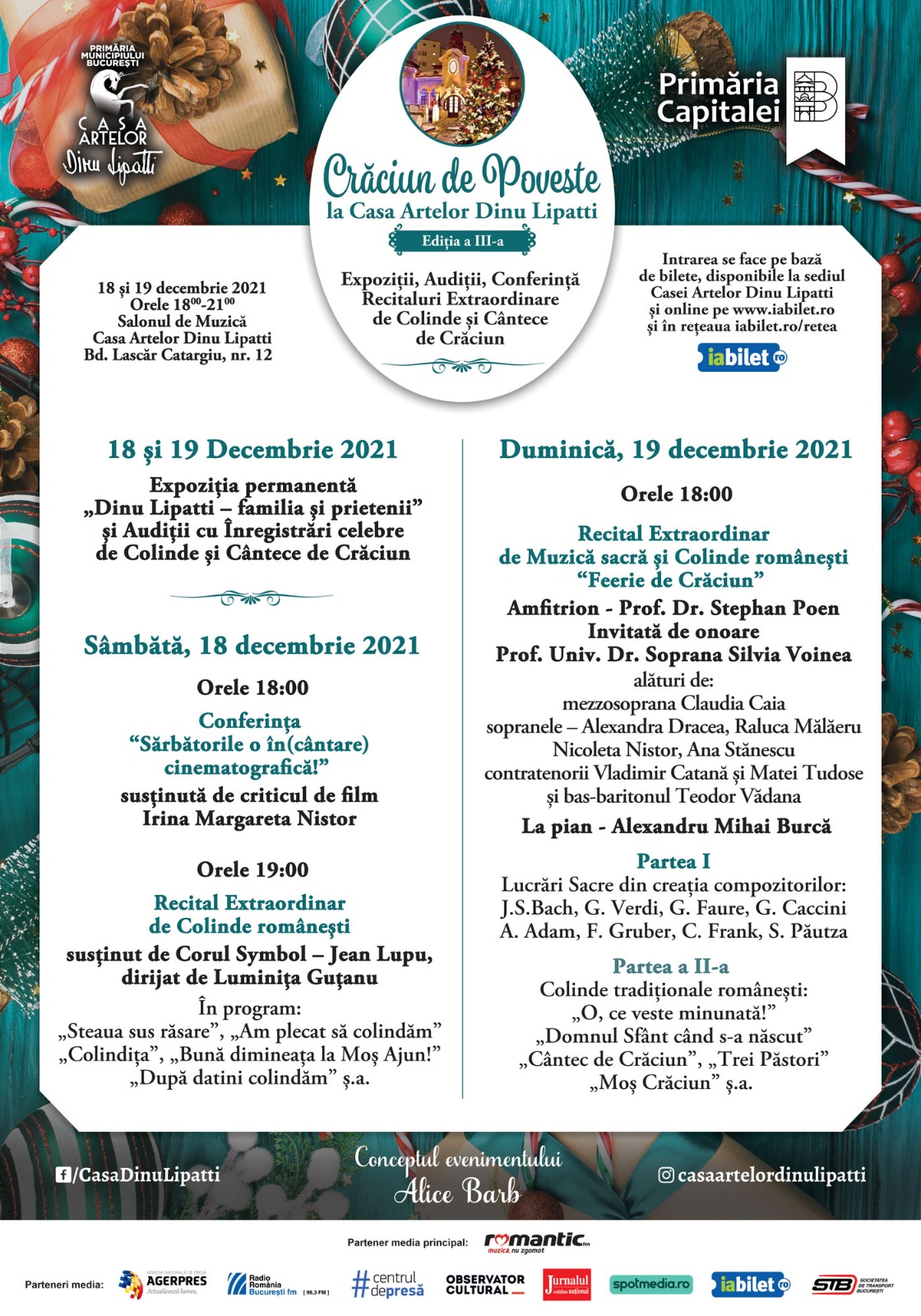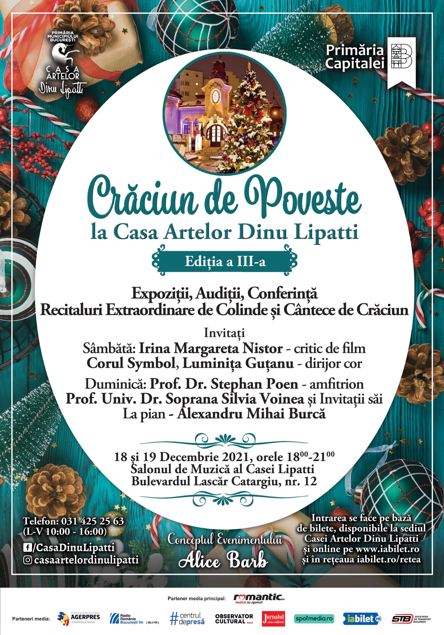 Casa Artelor Dinu Lipatti vă invită sâmbătă și suminică, 18 și 19 decembrie 2021, începând cu orele 18:00, la un „Crăciun de Poveste” în Salonul de Muzică!