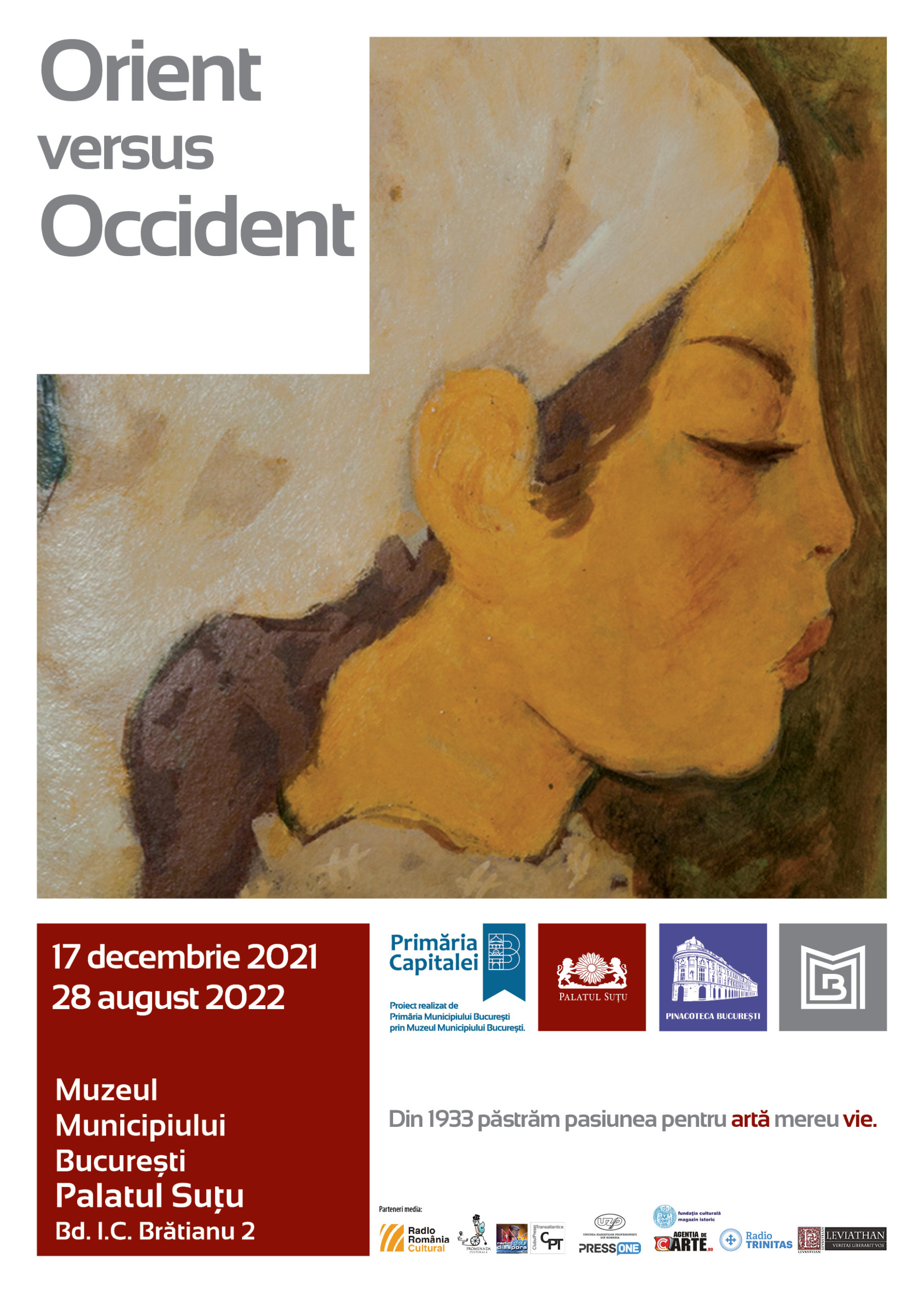 Muzeul Municipiului București invită publicul la marea expoziție tematică de pictură „Orient versus Occident”, care va putea fi vizitată la Palatul Suțu (Bdul Ion C. Brătianu, nr. 2), începând cu data de 17 decembrie 2021, ora 10:00.