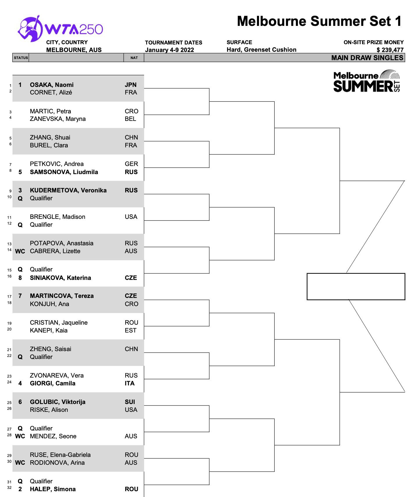 Pe lângă Halep și Ruse, pe tabloul principal al Melbourne Summer Set figurează și Jaqueline Cristian, care o va întâlni în primul tur pe estona Kaia Kanepi.