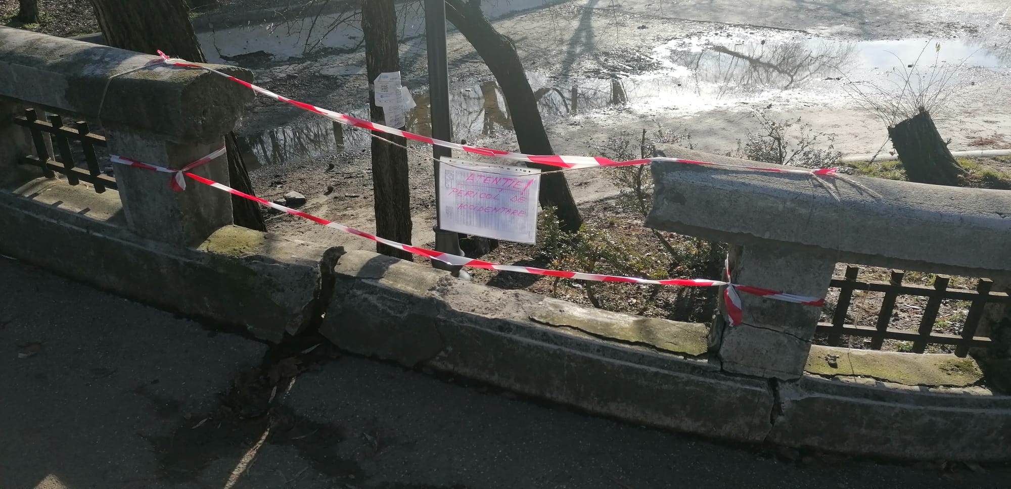 Acum, un segment din balustrada bătrânului pod de lângă platanul cel Mare a căzut, cine știe cum. Și, parcă pentru a pune cireașa pe tortul degradării Cișmigiului, cineva a spânzurat de niște benzi fosforescente o coală de hârtie cu un avertisment. Chiar sub geamul primarului general al Capitalei.