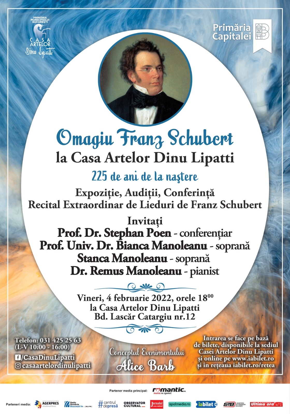 Casa Artelor Dinu Lipatti, Centru Cultural de Excelență a Primăriei București, cu misiunea de promovare a culturii clasice românești și universale, îi aduce un omagiu genialului compozitor Franz Schubert la împlinirea a 225 de ani de la naștere.