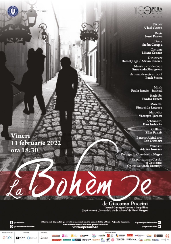 Opera Națională București prezintă vineri, 11 februarie, ora 18:30, spectacolul de operă „La Bohème” de Giacomo Puccini, capodoperă a verismului care, de peste 125 de ani, impresionează și entuziasmează publicul din toate generațiile de melomani. Este una dintre cele mai reprezentative opere în care este cântată sublim viața tinerilor și atmosfera spiritului lor juvenil.