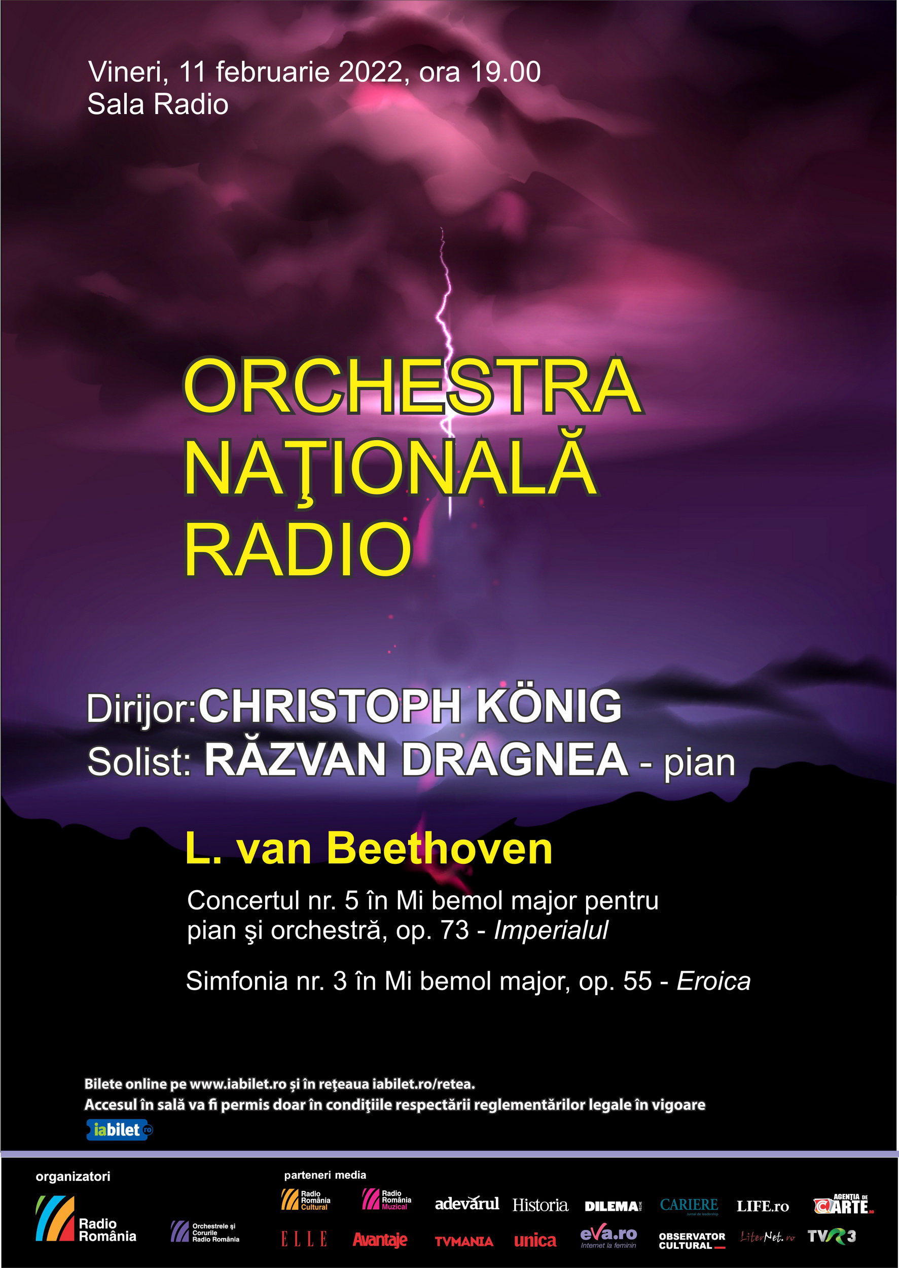 Vineri, 11 februarie 2022 (de la 19:00), la Sala Radio, seara beethoven se va desfășura sub bagheta dirijorului german Christoph König, care a urmat studii de perfecționare sub tutela unor celebri muzicieni, ca Sergiu Celibidache și Sir Colin Davis. Începând din stagiunea 2023 – 2024, Christoph König va prelua conducerea orchestrei simfonice a radioteleviziunii spaniole.