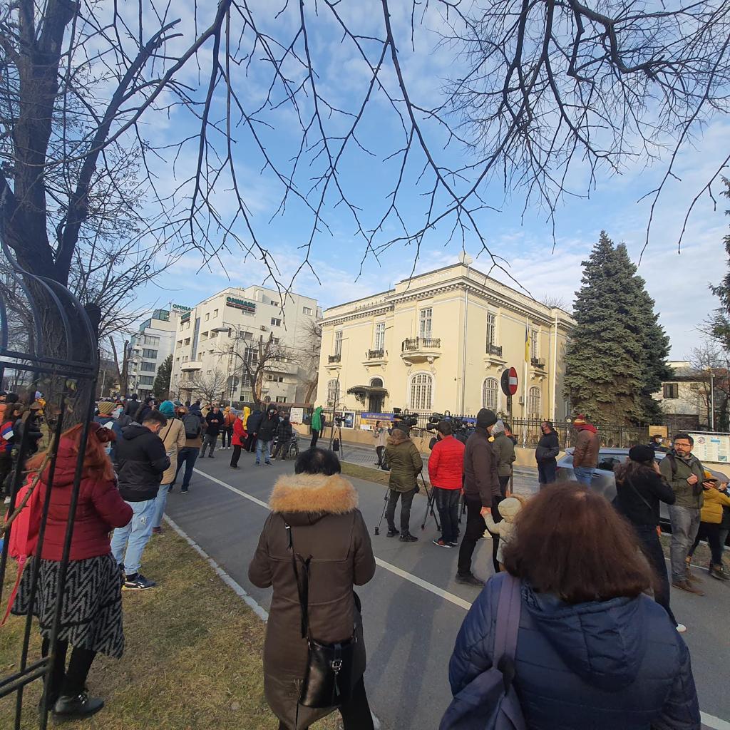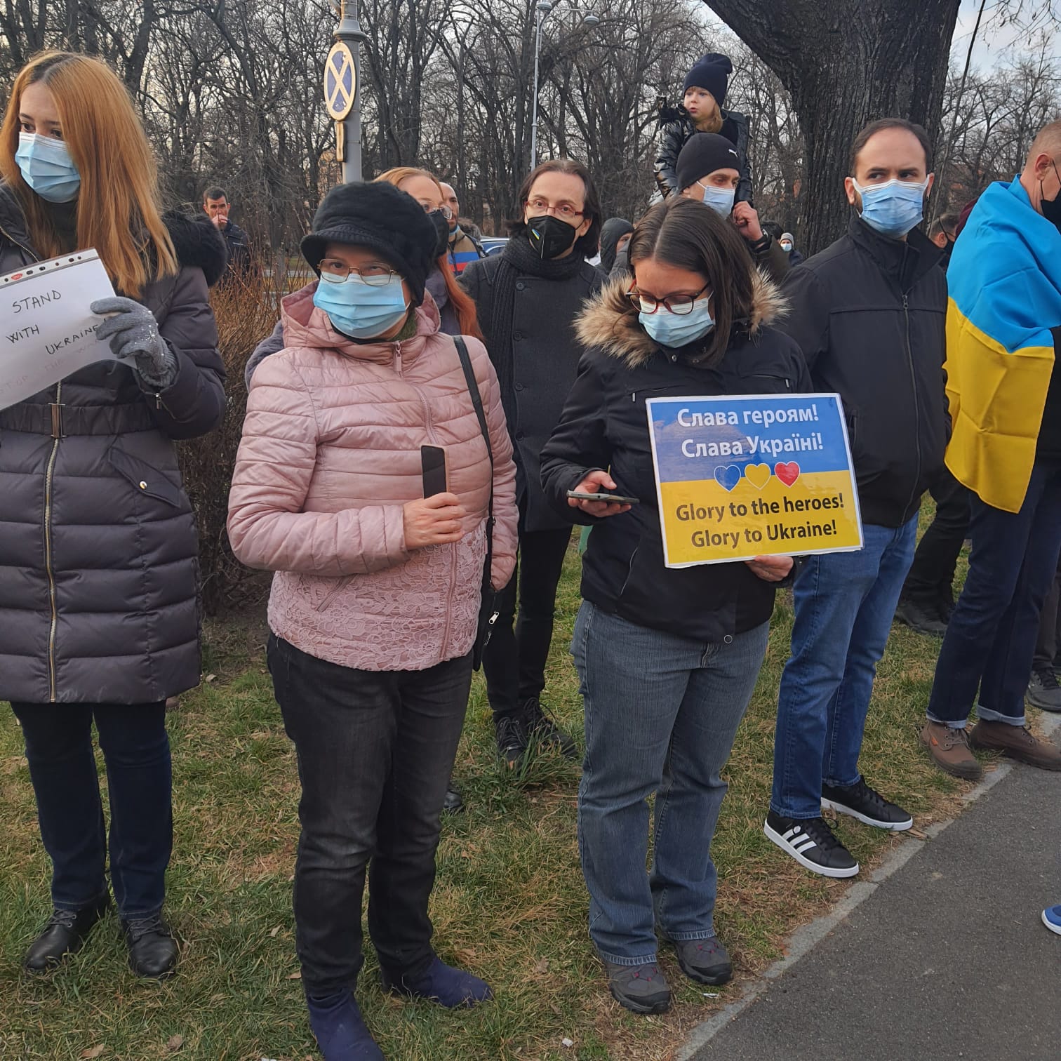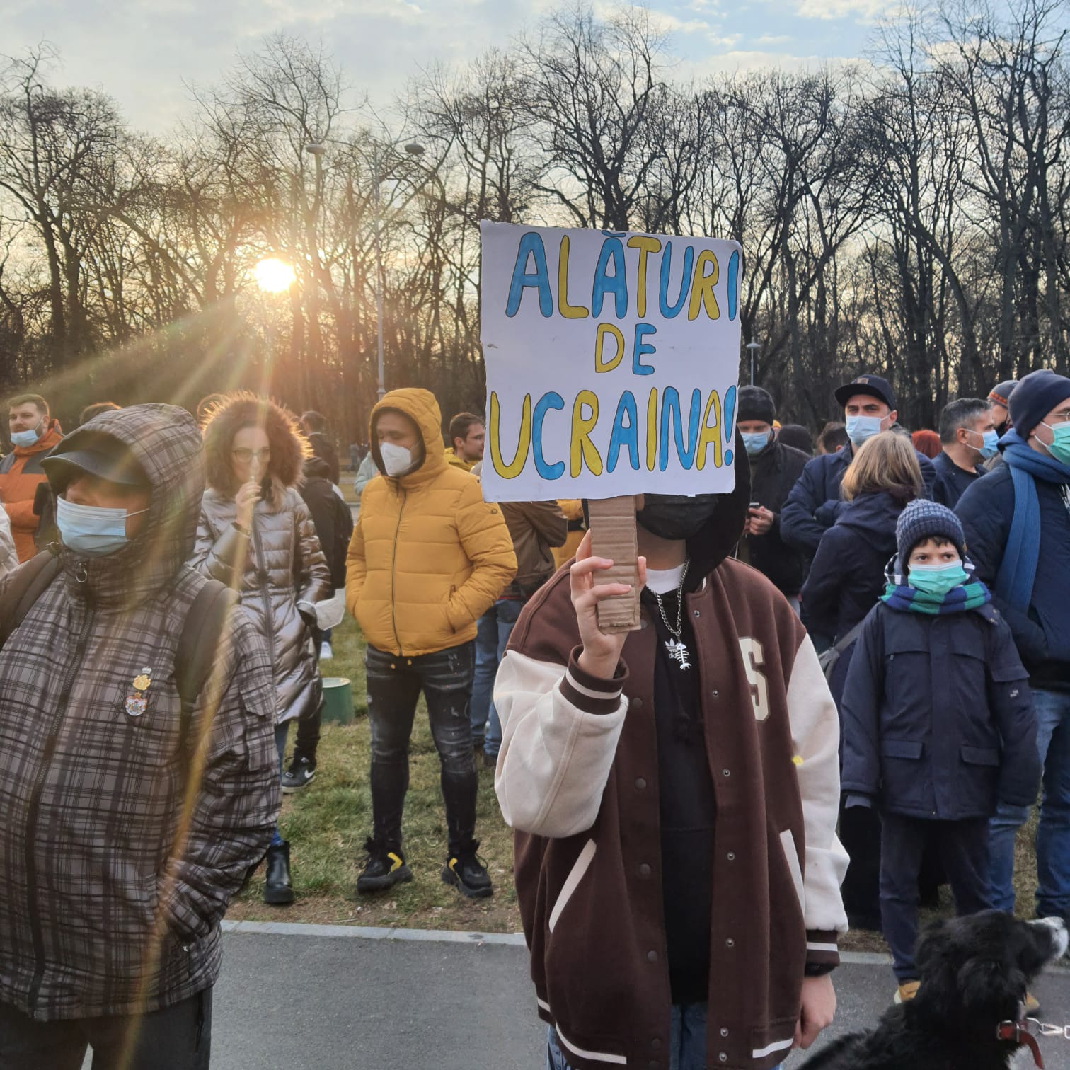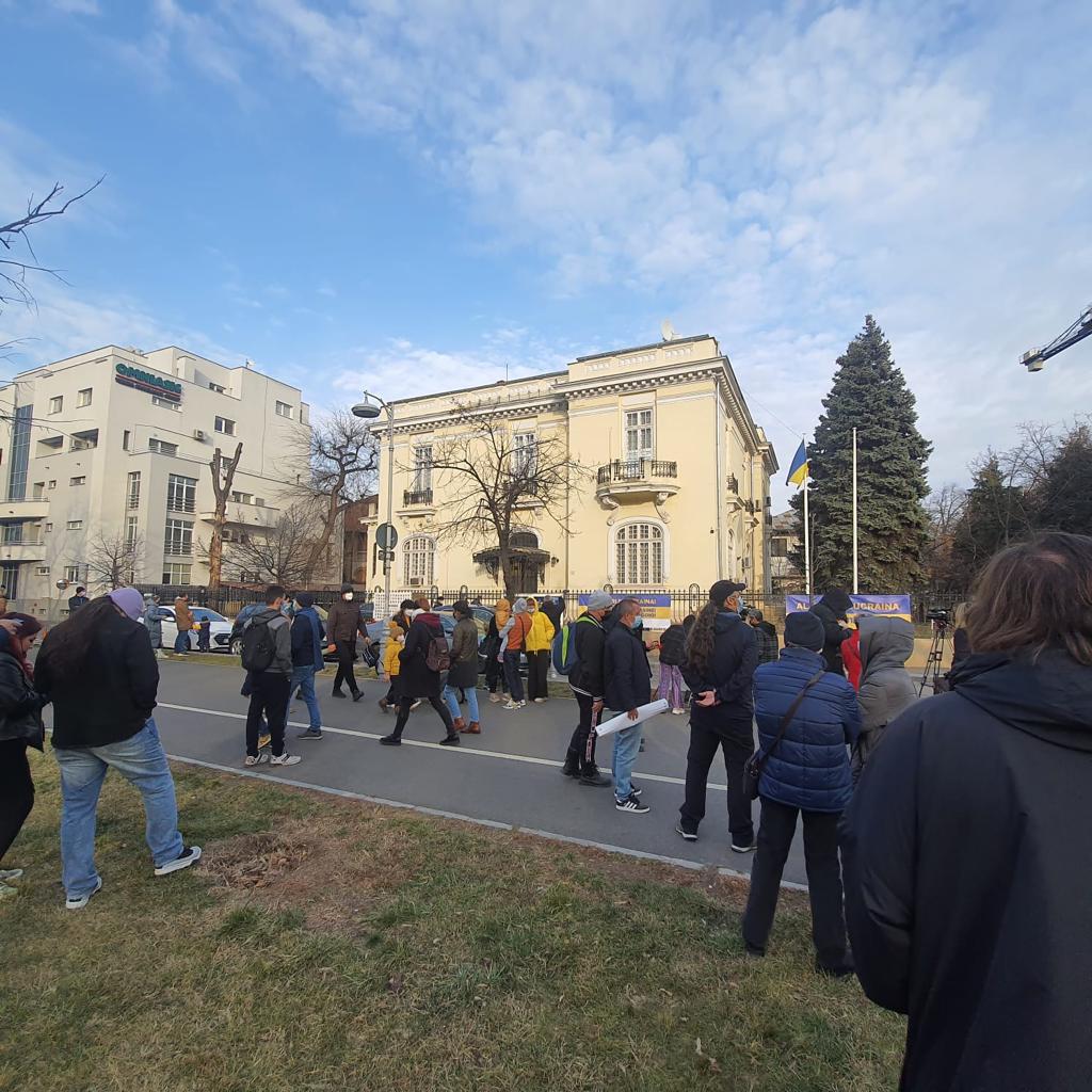 “Ne strângem în fața ambasadei Ucrainei din București (Bd. Aviatorilor nr. 24), sâmbătă, 26 februarie 2022, începând cu ora 16:30 pentru a ne manifesta pașnic solidaritatea cu Ucraina în fața agresiunii Federației Ruse.