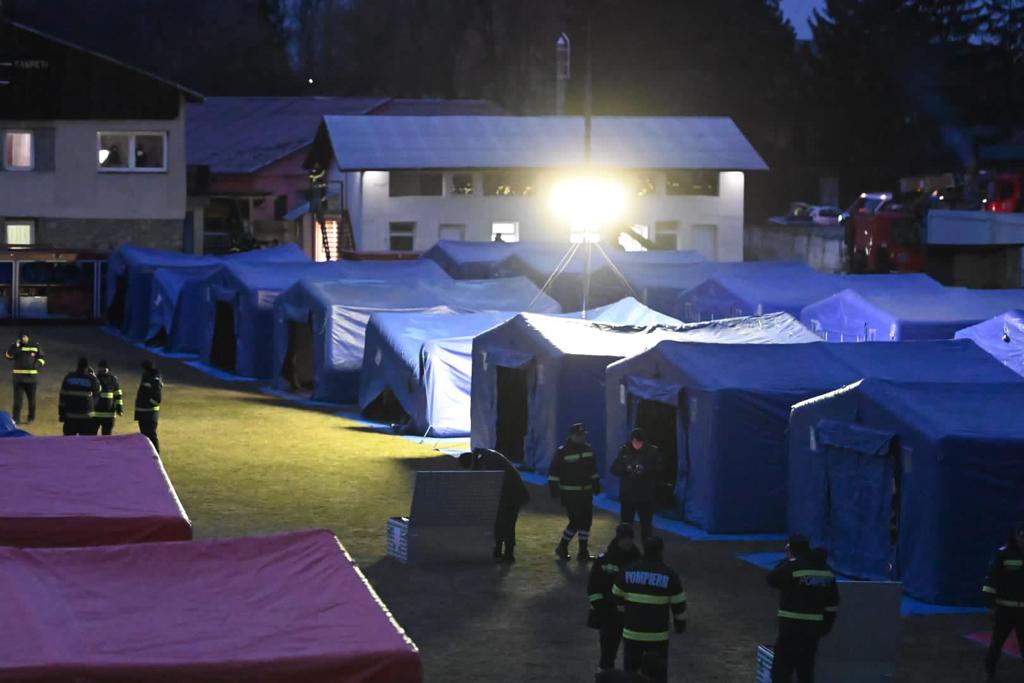 Totodată, la nivelul județului Maramureș, în localitatea Sighetu Marmației, pompierii salvatori depun eforturi susținute pentru operationalizarea taberei mobile, în vederea oferirii suportului de bază persoanelor care au nevoie de sprijin in zona respectivă.