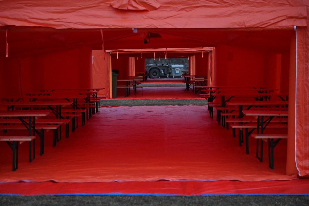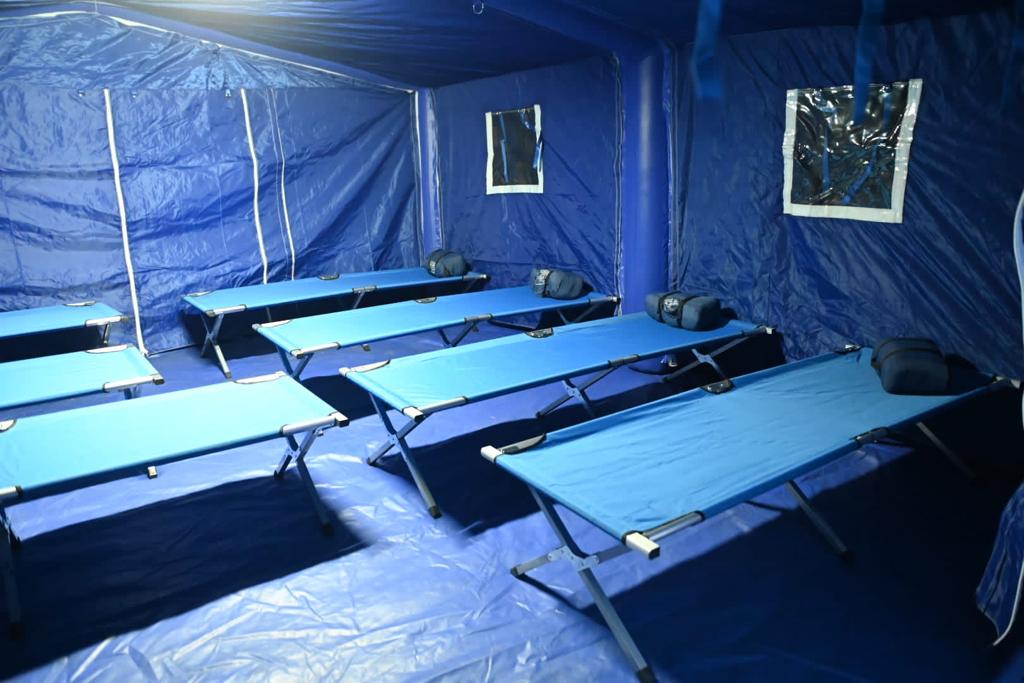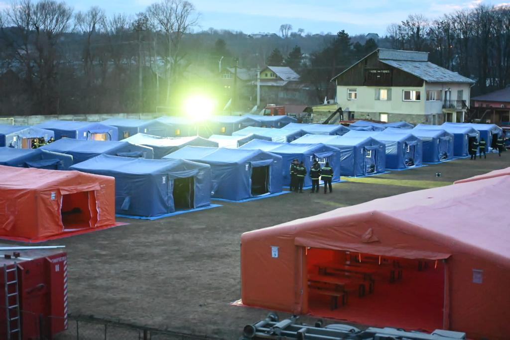 Unitatea mobilă, formată din 30 de corturi, este pregătită să asigure cazarea temporară a cetățenilor sosiți din zona de conflict.