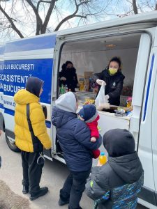 Nou punct deschis la Ambasada Ucrainei. Refugiații care vin acolo pentru a-și face actele, primesc: hrană, ceai, dulciuri.