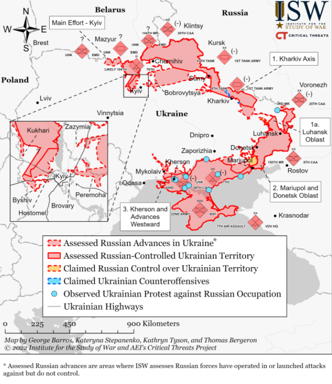 În acest timp, ministrul de externe rus Serghei Lavrov a reiterat la o conferinţă de presă că obiectivul negocierilor este asigurarea unui statut de neutralitate pentru Ucraina. ”Negocierile în desfăşurare au ca obiectiv asigurarea statutului militar neutru al Ucrainei în contextul garanţiilor de securitate pentru toţi participanţii la acest proces, împreună cu demilitarizarea Ucrainei, astfel încât nicio ameninţare pentru Rusia să nu provină de pe teritoriul său”, a adăugat Lavrov.