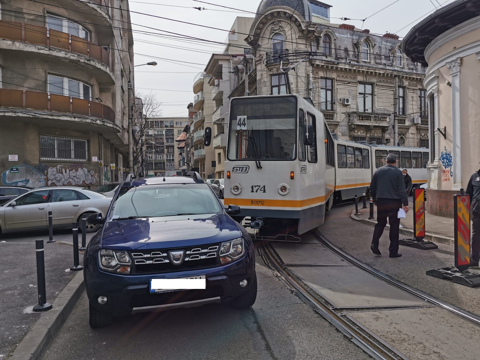 O masina parcată neregulamentar a blocat marti circulația tramvaielor de pe linia 44.