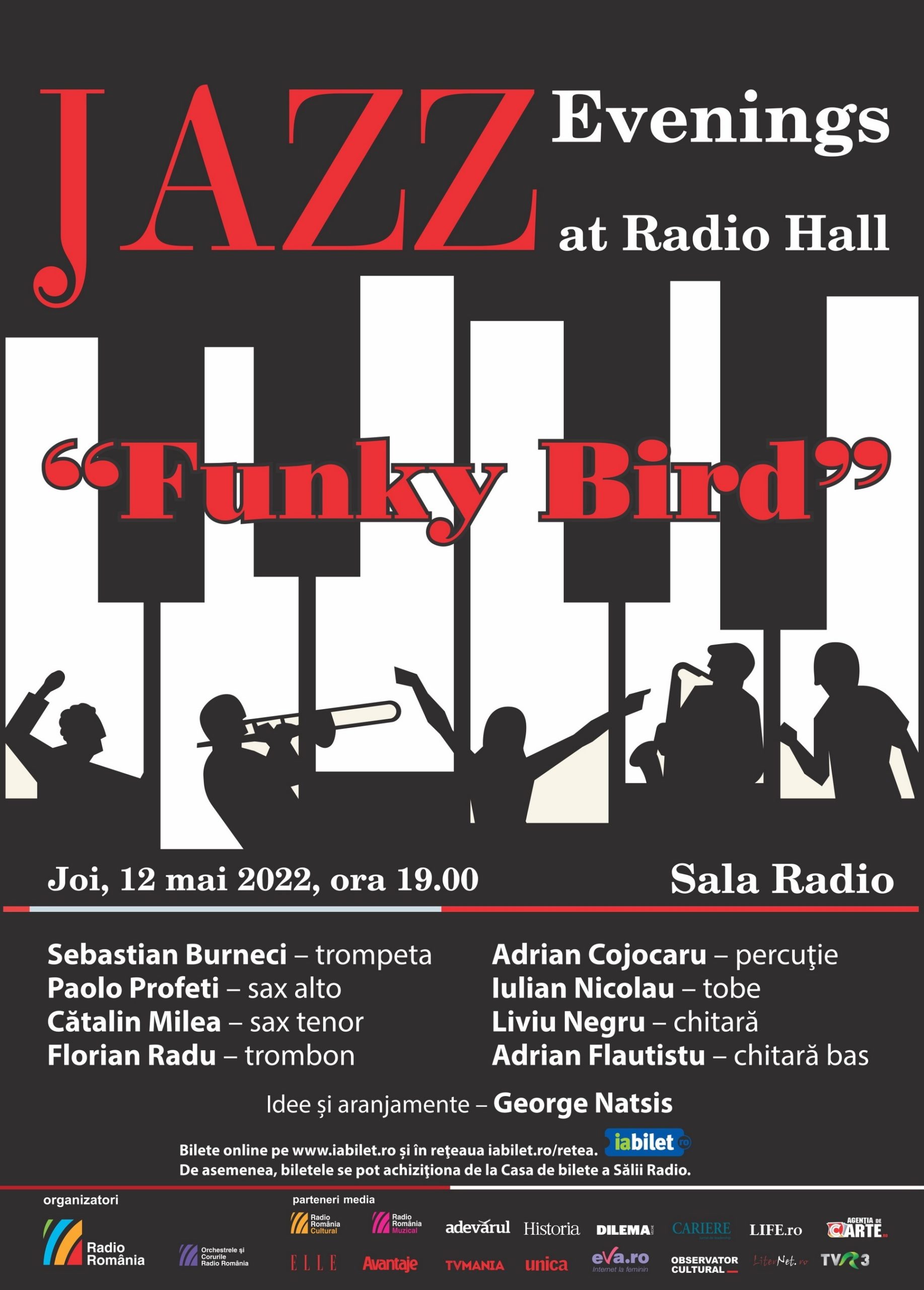 Joi, 12 mai, de la ora 19:00, un nou concert sub genericul Jazz Evenings at Radio Hall: Funky Bird, propus de membri ai Big Band-ului Radio.