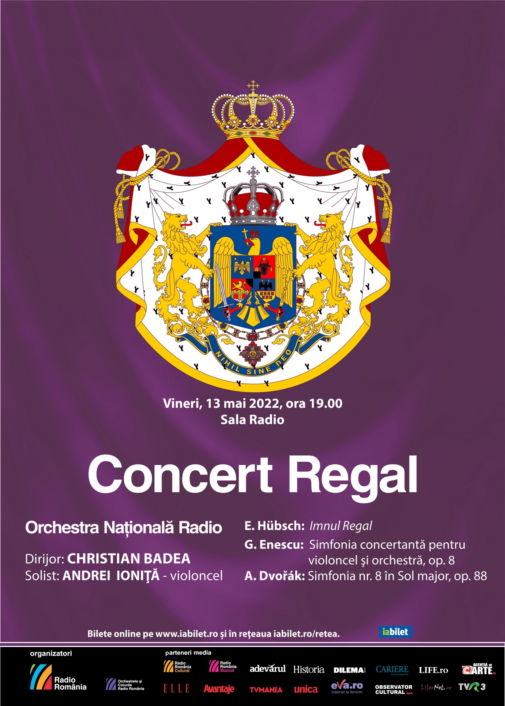 După cei doi ani de restricții pandemice, Sala Radio reia o frumoasă tradiție: în jurul datei de 10 mai – sărbătoare a regalităţii în România, Orchestra Națională Radio prezintă concertul regal anual, eveniment de înaltă ținută artistică și care se bucură de prezența unor membri ai Casei Regale.