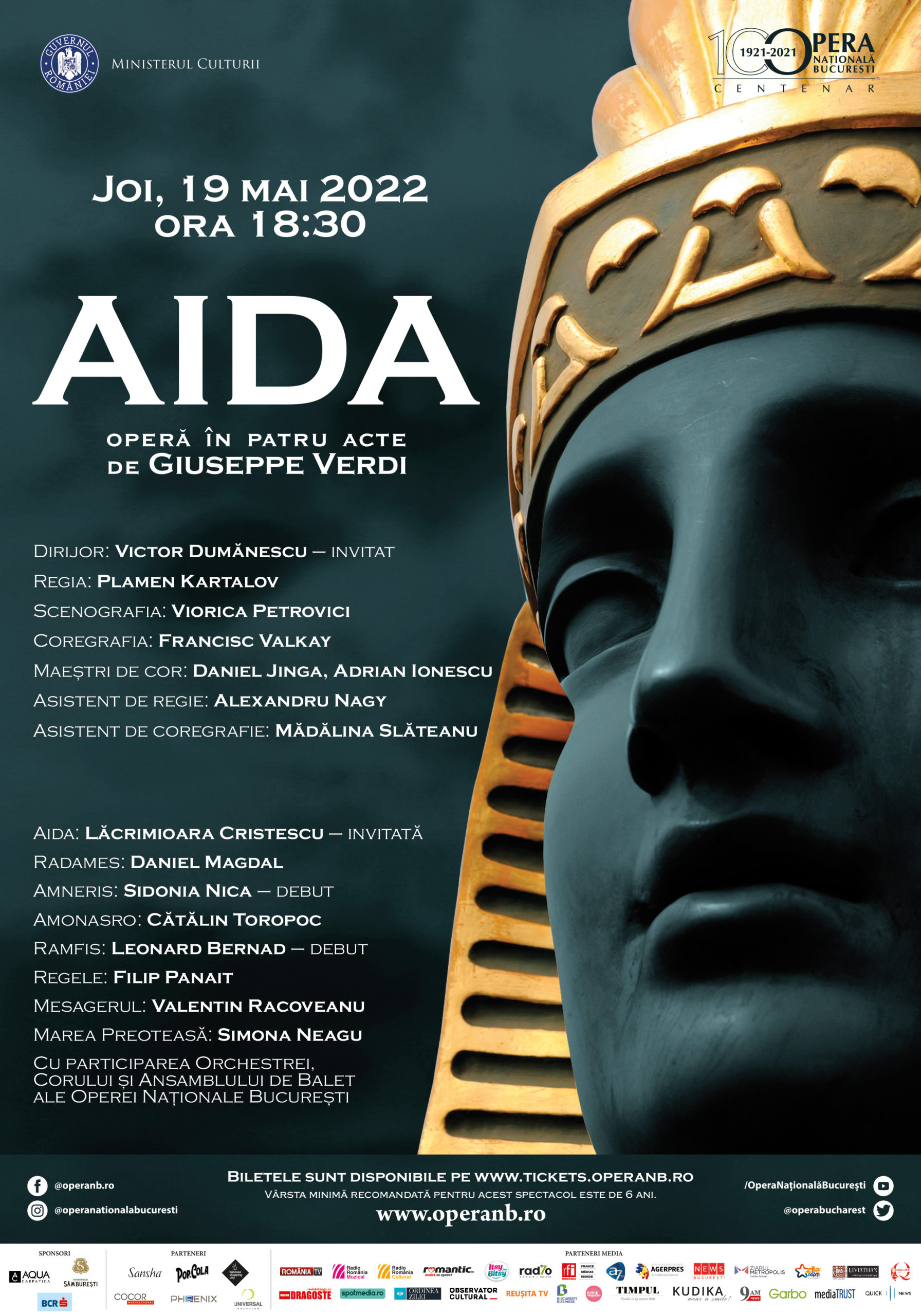Joi, 19 mai, ora 18:30, sunteţi aşteptaţi la spectacolul de operă „Aida” de Giuseppe Verdi. La pupitrul dirijoral se va afla în calitate de invitat maestrul Victor Dumănescu, dirijor și profesor la Academia de Muzică „Gheorghe Dima” din Cluj, muzician cu o bogată activitate dirijorală, desfășurată cu mari succese în țară și în străinătate, în cadrul căreia a colaborat cu mulți artiști valoroși atât români cât și străini.