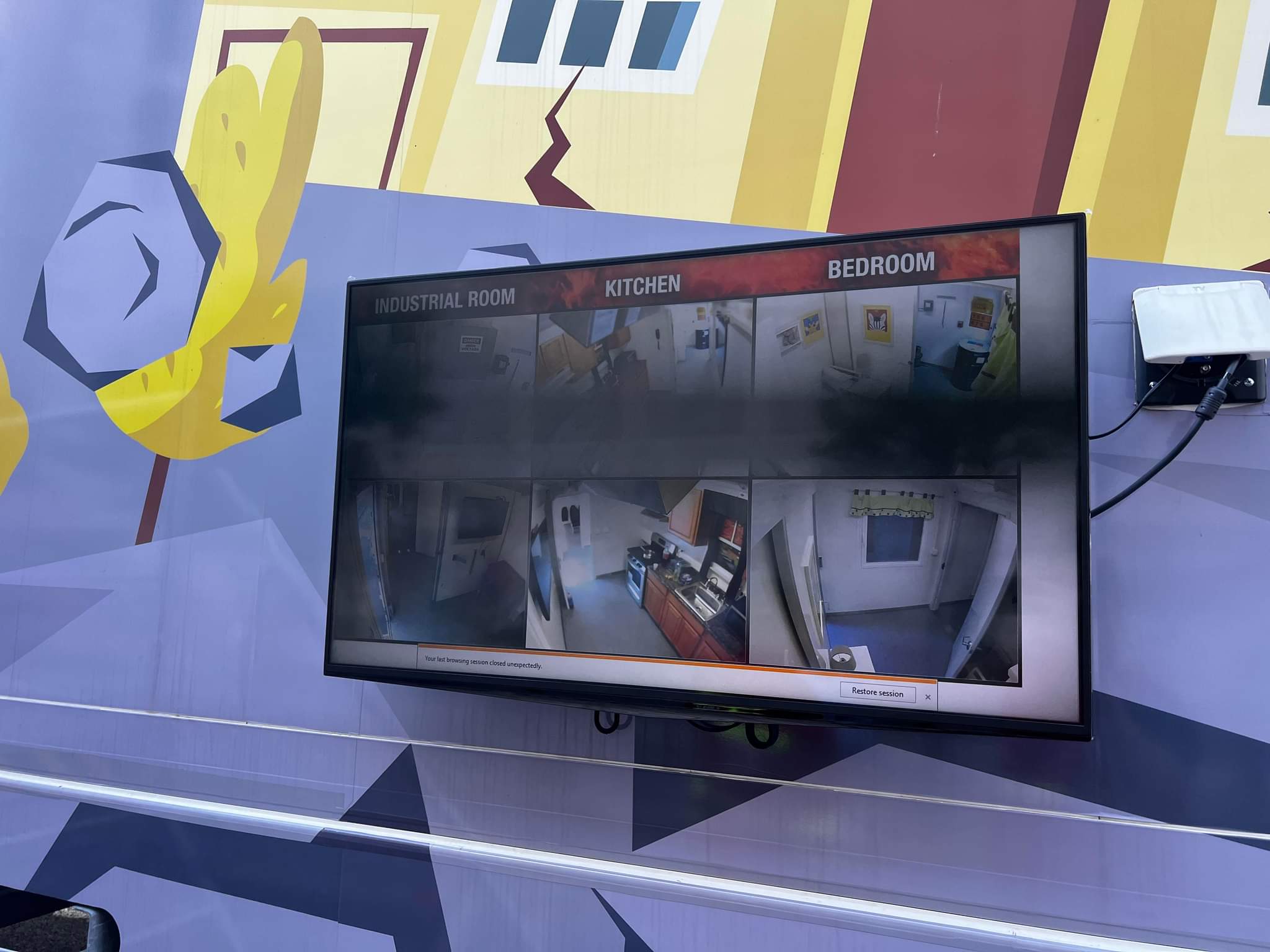 Centrul mobil este dotat cu echipamente inteligente ce simulează situații de urgență, cum ar fi incendiile, printre care: aragaz, dulap inteligent cu ardere, cuptor cu microunde, coș de gunoi, prăjitor de pâine, tablou electric cu scânteie, prize fumegânde, mașină de spălat, alarmă de incendiu, butoi chimic, butelie de gaz, aer condiționat, simulare fum care iese pe sub ușa încălzită, alarme de fum, fereastră de evacuare.
