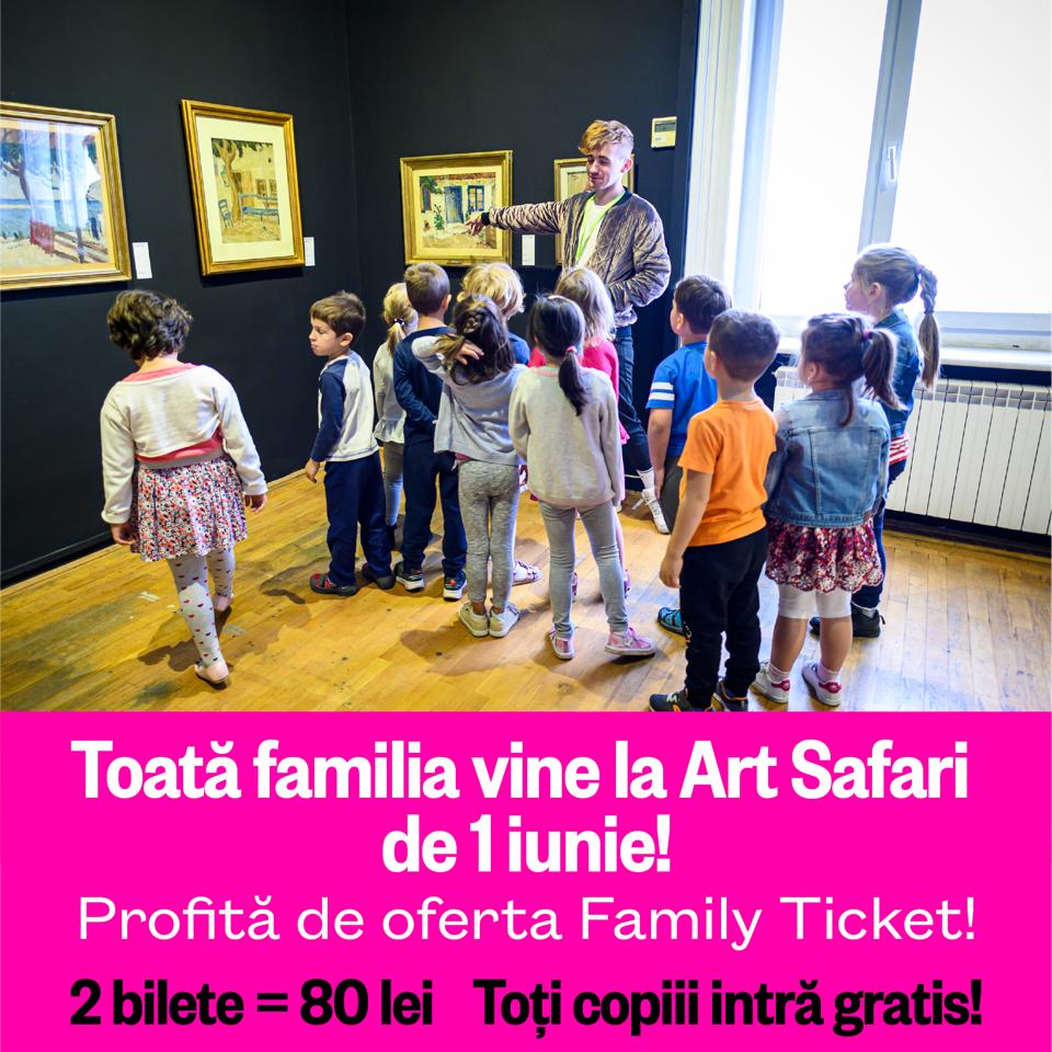 Art Safari va fi deschis special de 1 Iunie și lansează Family Ticket, un bilet pentru întreaga familie. În această zi, toți copiii au acces gratuit la cel mai mare eveniment dedicat artei din țară, iar adulții care îi însoțesc beneficiază de 50% reducere la bilete.
