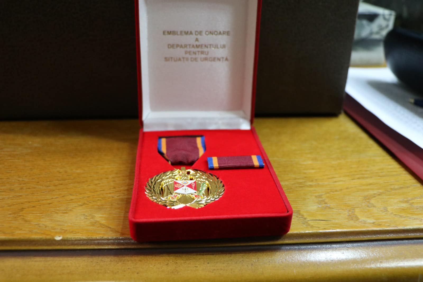 Astfel, în semn de recunoștință pentru întreaga activitate depusă în slujba salvării vieții cetățenilor, șeful DSU, dr. Raed Arafat a înmânat ,,Emblema de onoare a Departamentului pentru Situații de Urgență”, profesioniștilor care activează în cadrul sistemului integrat de urgență și anume, personal din cadrul Inspectoratului General pentru Situații de Urgență (IGSU), Inspectoratului General de Aviație al MAI (IGAv), Serviciilor Publice de Ambulanță (SAJ/SABIf), Unităților de Primiri Urgente (UPU/CPU), Salvamont.