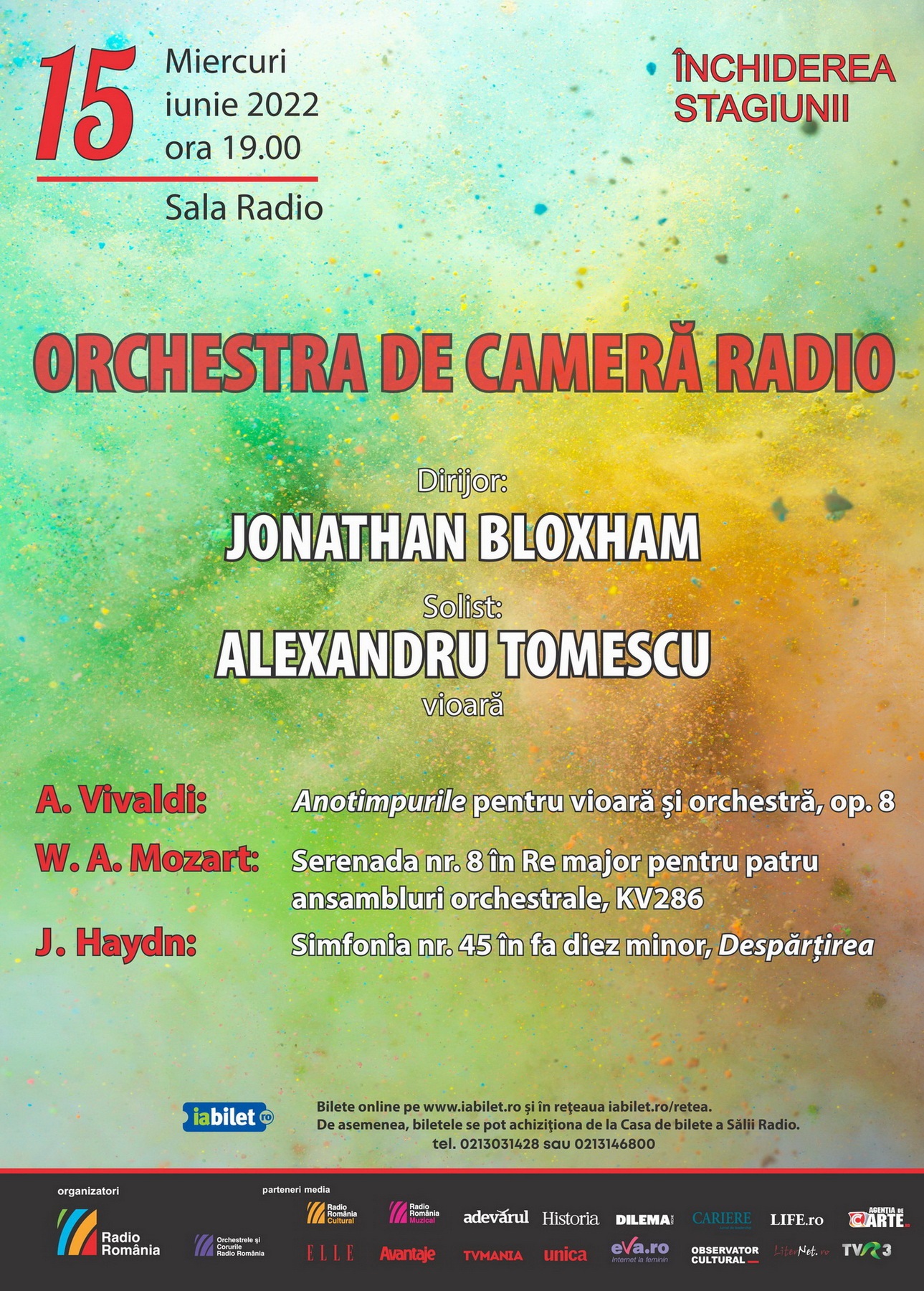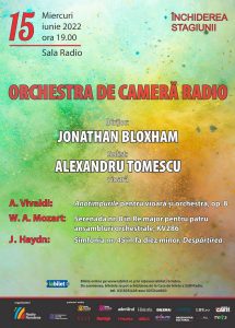 Miercuri, 15 iunie, de la ora 19:00, concertul se desfășoară sub bagheta dirijorului britanic Jonathan Bloxham, ce s-a aflat recent la pupitrul unor ansambluri ca Royal Philharmonic – Londra, Orchestra Simfonică din München, Salzburg Mozarteum, London Mozart Players, Orchestra Națională BBC – Wales etc.