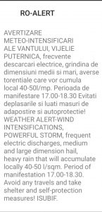 UPDATE 17.30: Avertizarea meteorologilor a fost revizuită în COD ROȘU de vijelii până la ora 18.30.