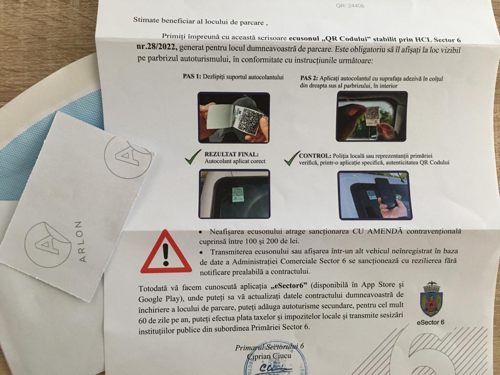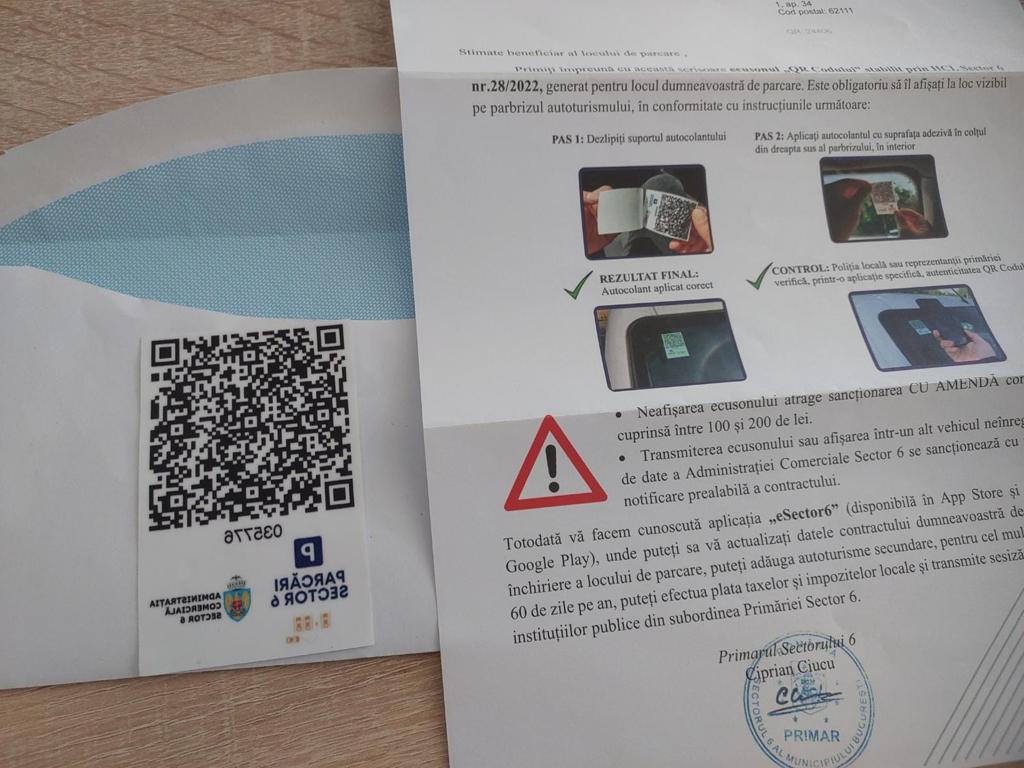În Sectorul 6, se poate aloca un singur loc de parcare pe apartament. Așadar, se oferă un singur QR cod pentru o singură mașină.