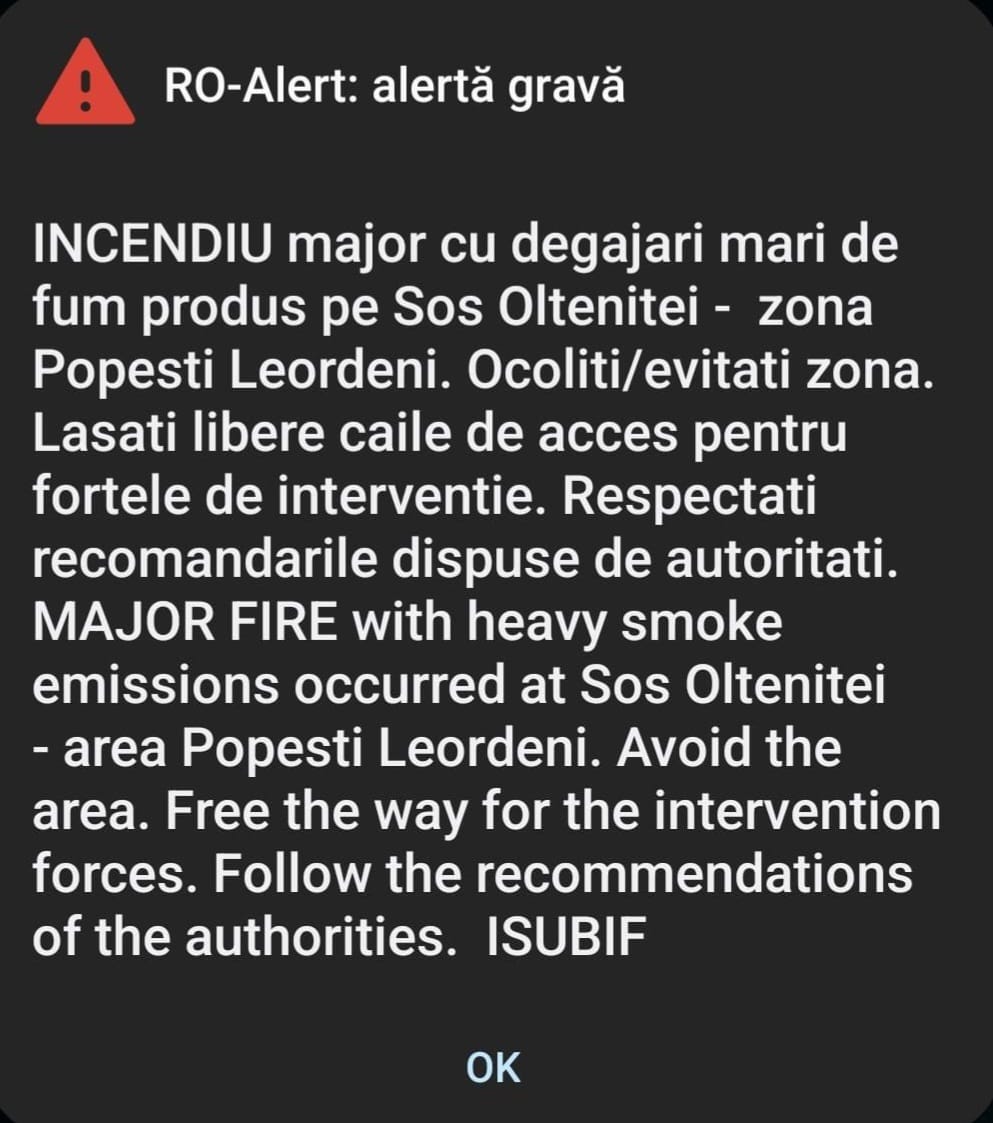 S-a transmis mesaj prin sistemul RoAlert pentru informarea populatiei.