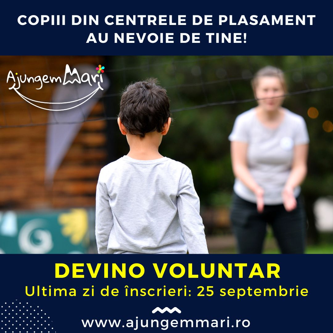 Înscrierile în program se pot face pe www.ajungemmari.ro, se încheie pe 25 septembrie, iar cea mai mare nevoie de voluntari se resimte în Bucureşti, Argeş, Botoşani, Braşov, Buzău, Cluj, Dâmboviţa, Gorj, Iaşi, Mureş, Neamţ, Timiş şi Vrancea.